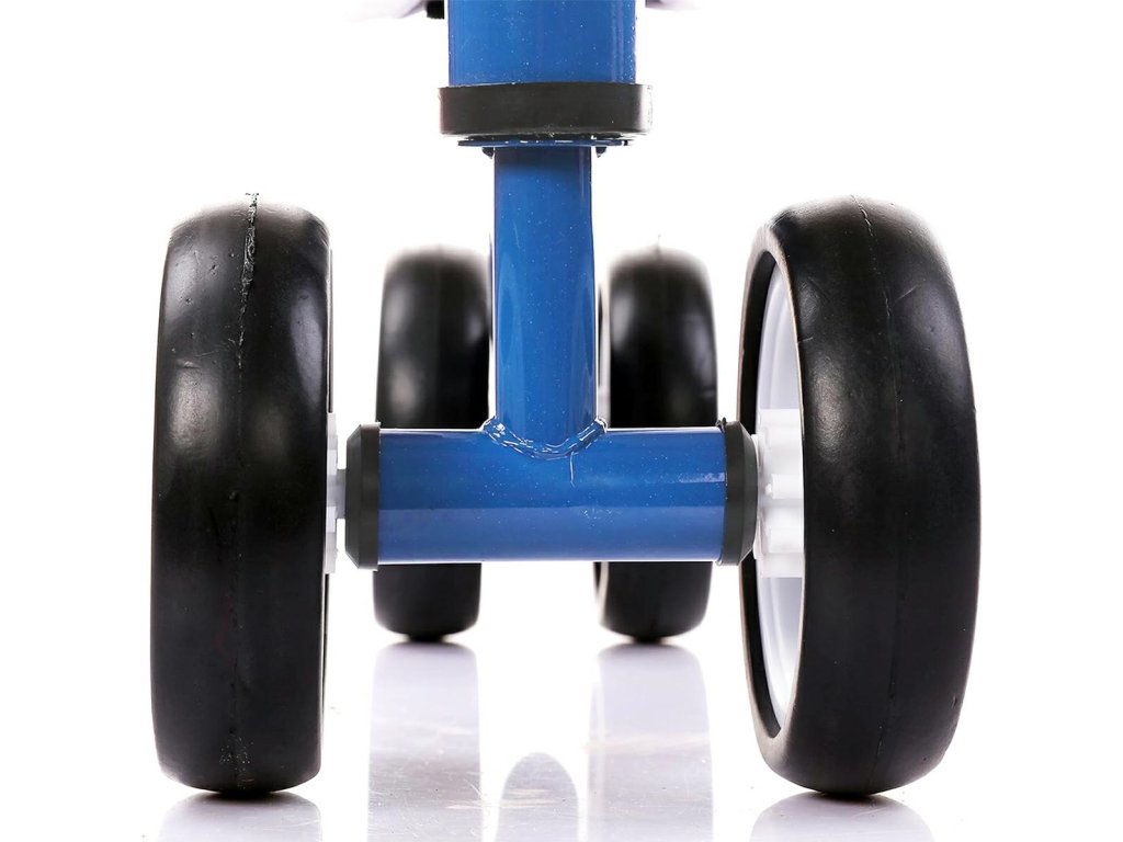Pevná a univerzální konstrukce, kterou lze využít k učení rovnováhy před přechodem na kolo s pedály. Měkké, dobře profilované sedlo poskytuje dítěti pohodlí a řídítka jsou potažena protiskluzovým materiálem. Všechna kola mají vrstvu EVA pěny, která zabraňuje poškrábání povrchu a mírně tlumí nárazy při jízdě. Malá velikost a hmotnost usnadňují přepravu a přenášení kola.