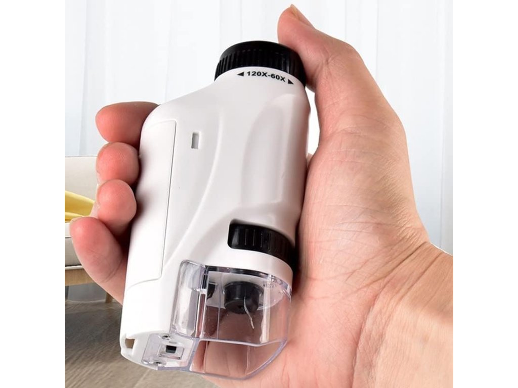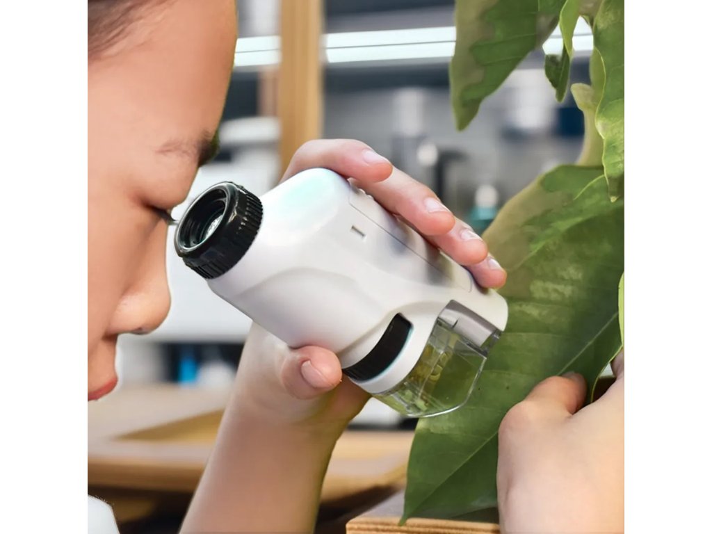 Vzdělávací mikroskop pro děti s vysokým zvětšením (120-60x). Přídavné LED osvětlení pro snadné pozorování preparátů. Vybaven plynulým nastavením ohniskové vzdálenosti (FOCUS). Jednoduchá obsluha díky malým rozměrům a kompaktnímu provedení. Možnost pohodlného nošení na odnímatelné šňůrce. Sada obsahuje sadu preparátů pro pozorování.