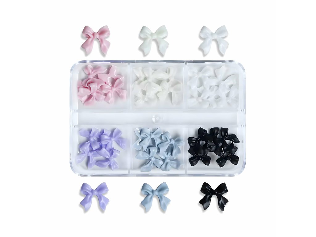 Sada 30 3D dekorací na nehty. 6 barev dekorací balených v plastové krabičce.