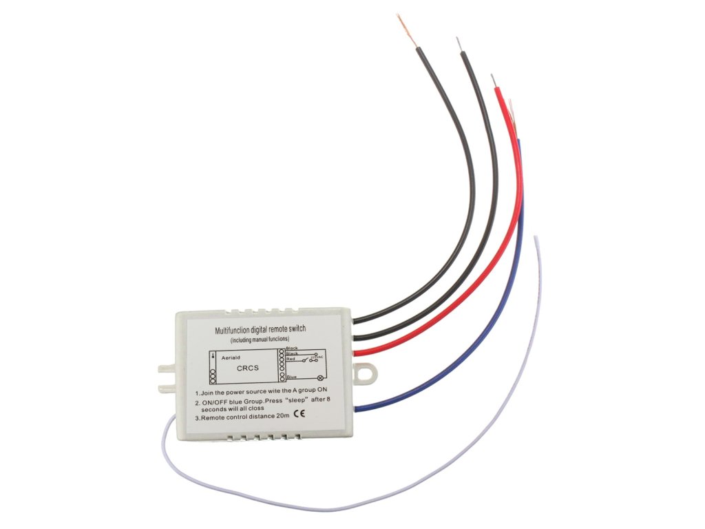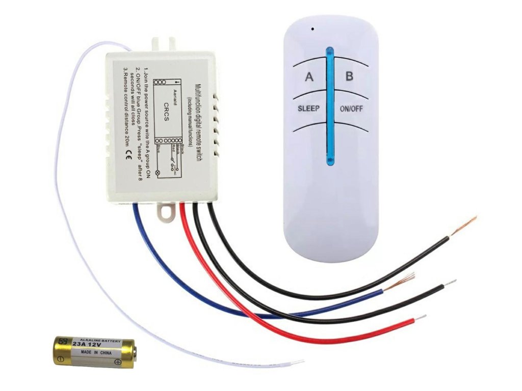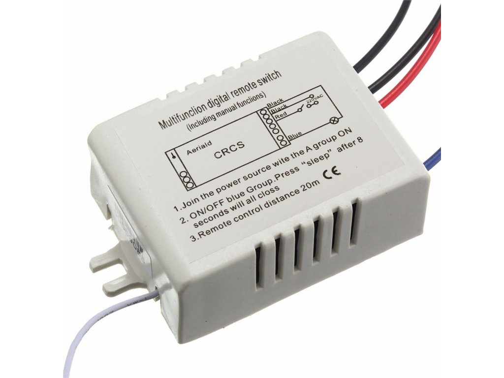 Bezdrátový vypínač osvětlení. Vybavena bezdrátovým dálkovým ovladačem, který vám umožní pohodlně zapínat a vypínat světla a další elektrická zařízení napájená z elektrické sítě 230V. Řadič produktu má 1 kanál s maximálním zatížením až 1000W. Dálkový ovladač využívá rádiovou komunikaci, která neruší činnost ostatních zařízení a jeho dosah je až 20 metrů na volném prostranství. Včetně všech potřebných montážních prvků a kabeláže.