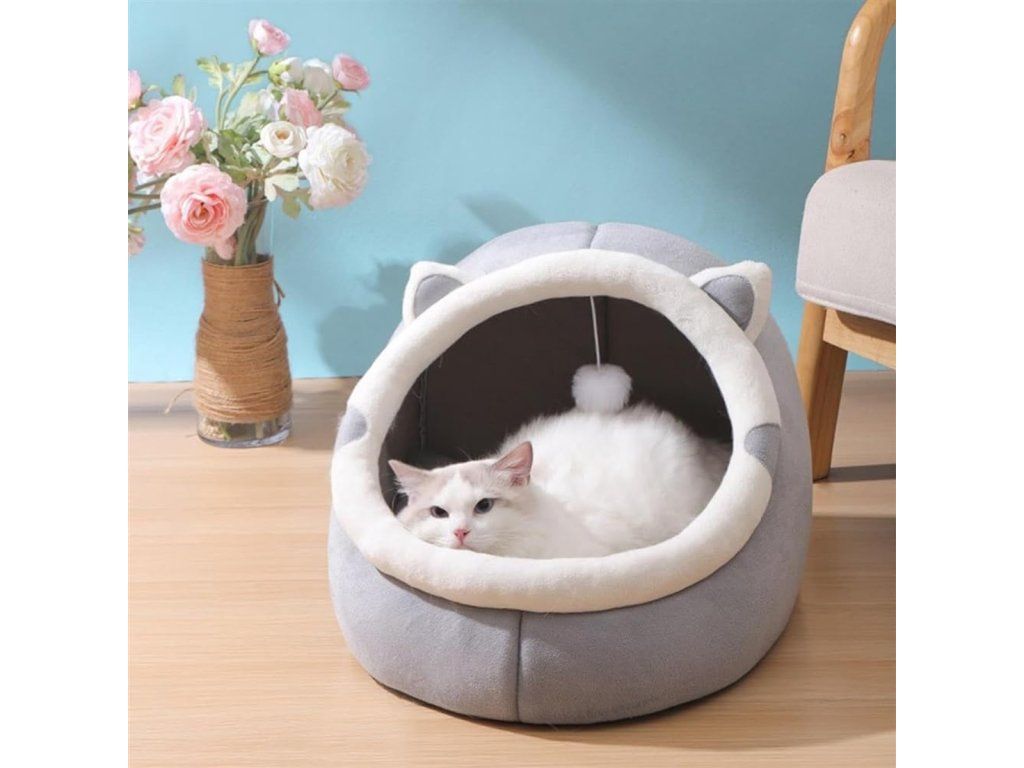 Pohodlný a estetický pelíšek pro vašeho mazlíčka. Je velmi měkký a vhodný pro domácí mazlíčky. Neobvyklá konstrukce ve tvaru uzavřené budky s kočičíma ušima. Silné stěny a dno z protiskluzové tkaniny zajišťují pohodlí a bezpečí pro naše zvířata. Postel je vyplněna měkkou a deformovatelnou pěnou. Pohodlná, měkká základní vrstva.Vlastnosti produktu: