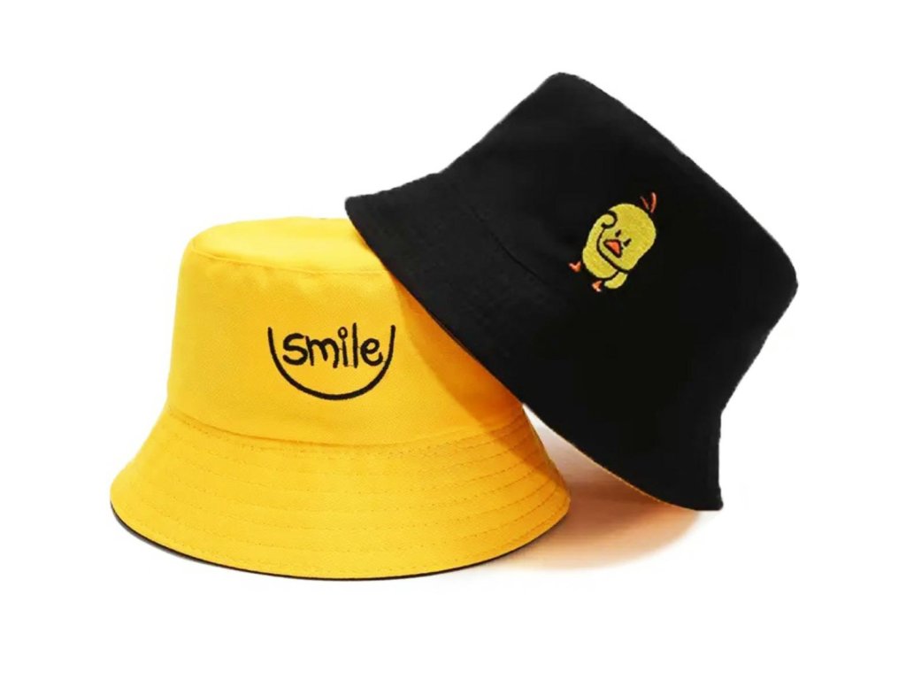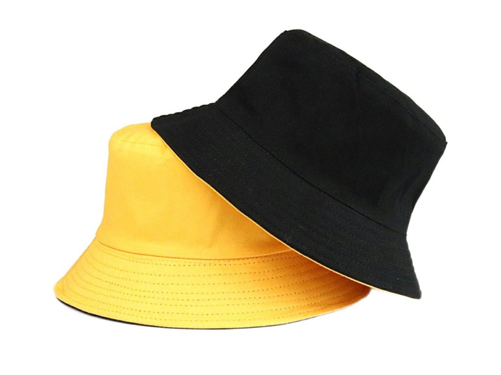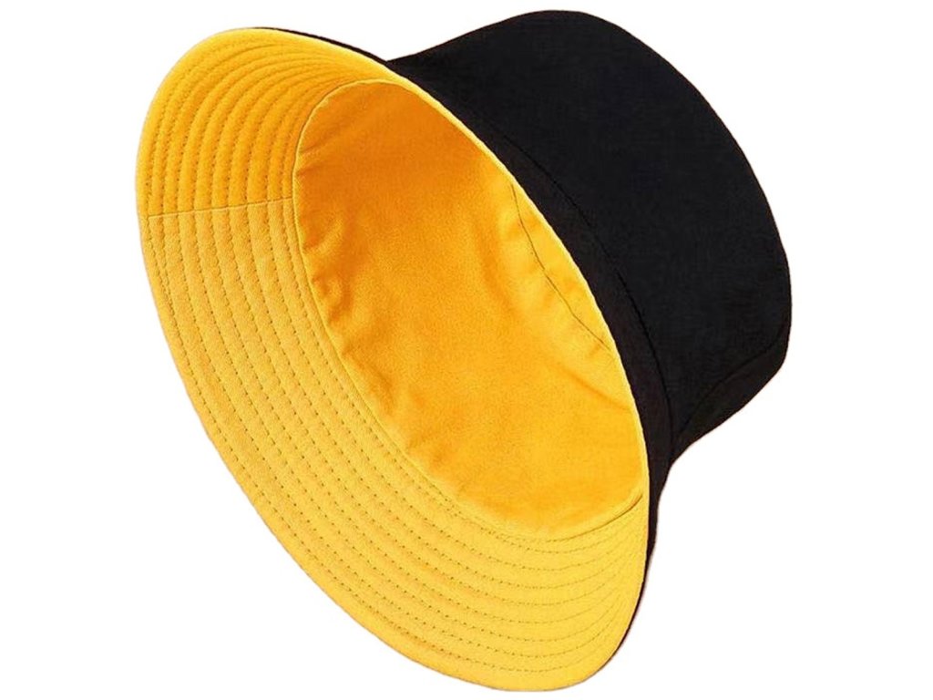 Typ rybářského klobouku typu bucket hat. Pokrývka hlavy je oboustranná, stačí ji obrátit, aby se změnila její barva (z černé na žlutou a naopak). Design, který se rozšiřuje směrem dolů, chrání oči před sluncem. Ideální pro každou příležitost.