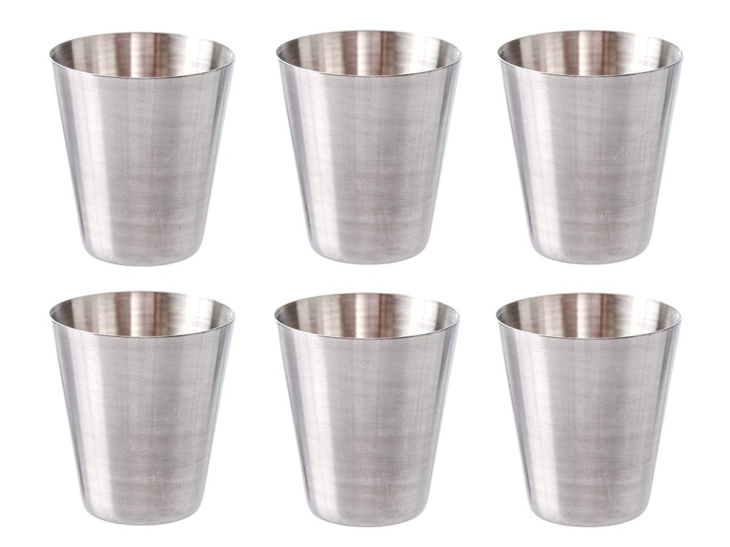- Sada 6 sklenic o objemu 30 ml je vyrobena z nerezové oceli, která zajišťuje vysokou odolnost a dlouhou životnost.