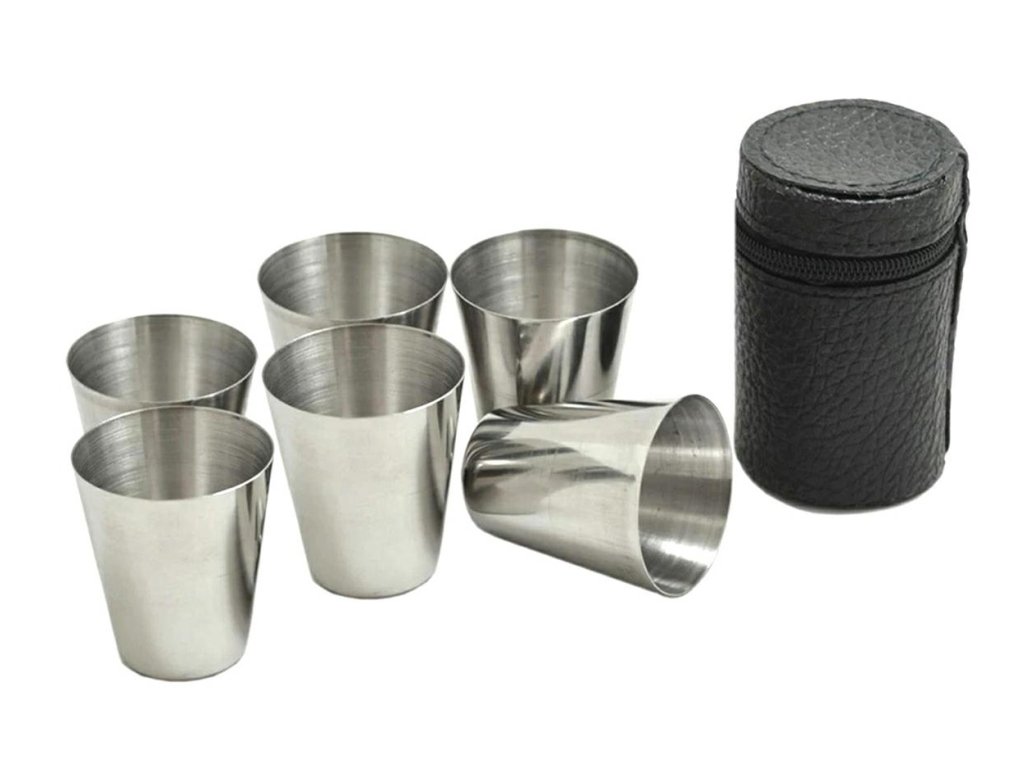 Sada 6 sklenic o objemu 30 ml každá zabalená ve velmi praktickém pouzdře z ekokůže! Sklenice jsou vyrobeny z vysoce kvalitní nerezové oceli, takže vydrží věky a proteče jimi moře vodky :) Skvěle se hodí na pořádání venkovních večírků, zateplovacích večírků a všelijakých jiných koktejlových večírků. Naprostá nutnost každého pokročilého rybáře při "rybářské" výpravě :)