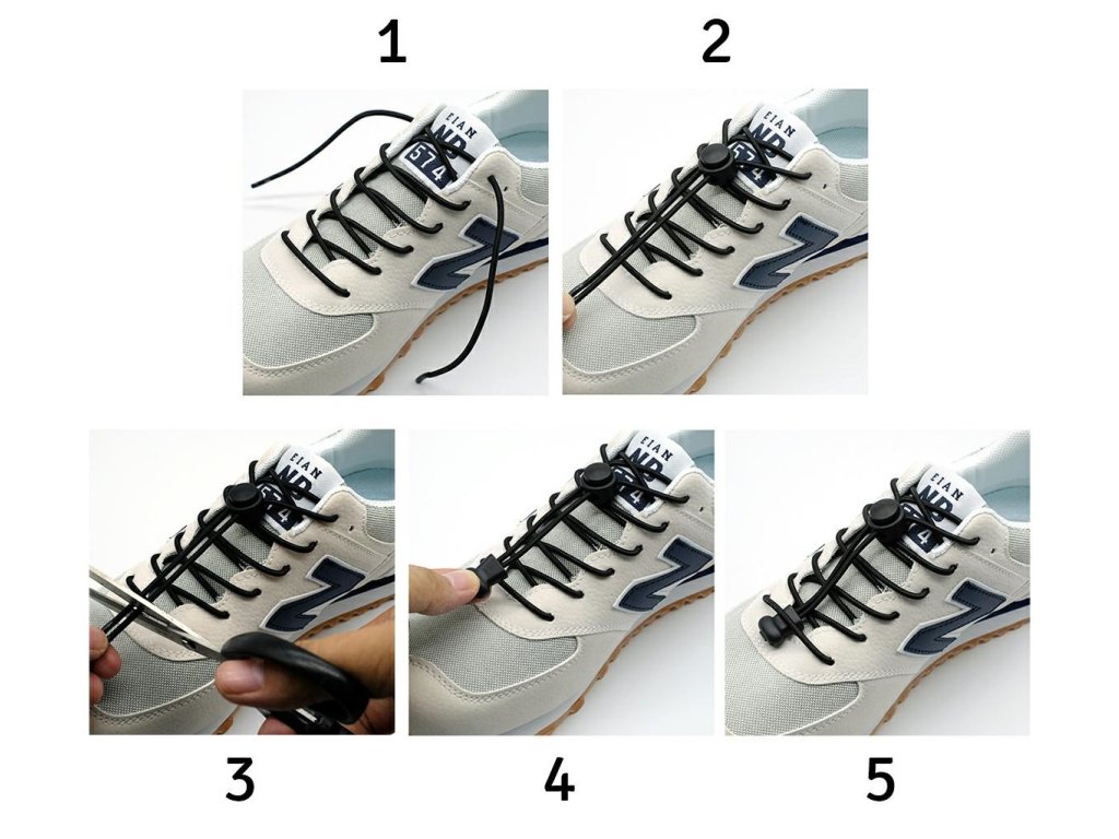 - Nastavitelná délka a vysoká elasticita umožňují pohodlné přizpůsobení tkaniček konkrétní obuvi.