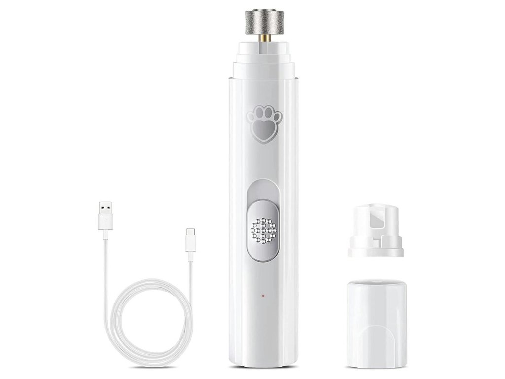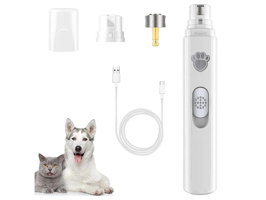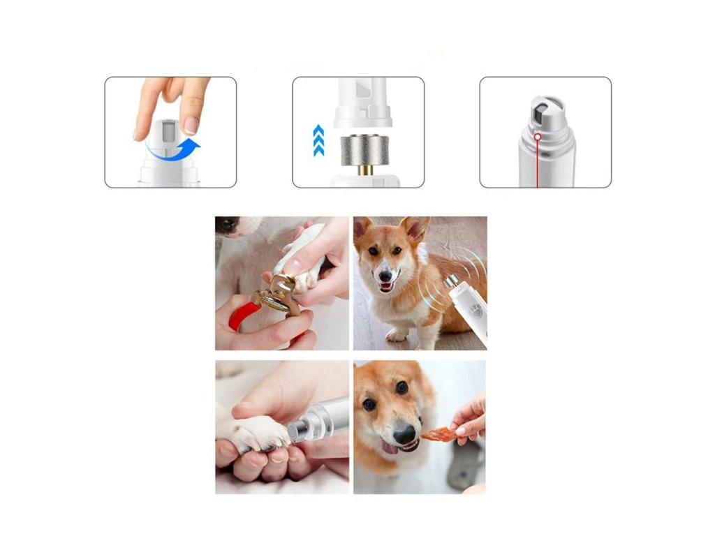 Aku drápová bruska. Vybaveno dvoustupňovou regulací rychlosti v závislosti na velikosti a tvrdosti drápků. Vestavěná baterie výrazně zvyšuje komfort používání. Pevný diamantový hrot zajišťuje správnou přesnost při práci. Zařízení je tiché, což zvířeti šetří zbytečný stres. Sada obsahuje také USB kabel pro nabíjení baterie.