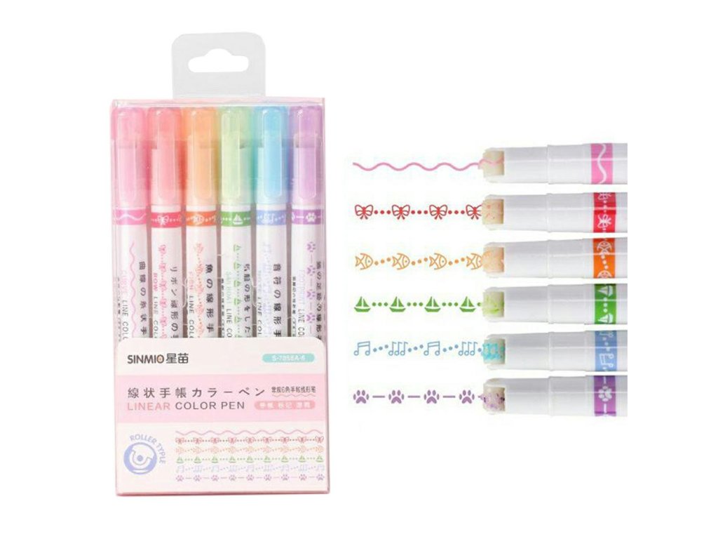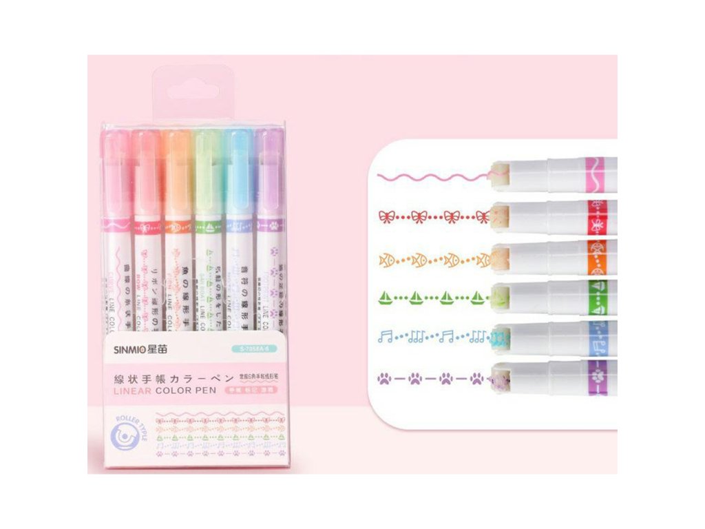 Sada 6 různých barevných fixů. Každý fix maluje jiný vzor. Atraktivní vzhled vzorů povzbudí děti, aby se naučily psát. Jsou ideální pro zvýraznění poznámek nebo vytváření dekorací. Ergonomický tvar umožňuje pohodlné používání pera. Inkoust rychle schne, takže se poznámky nerozmazávají.