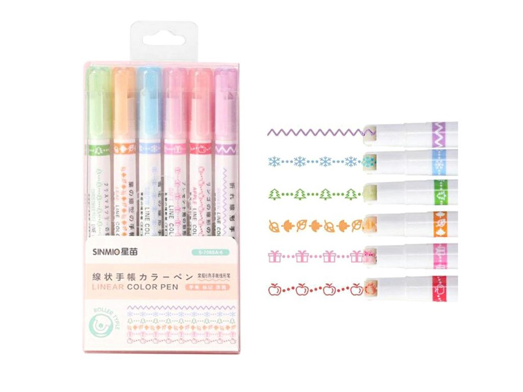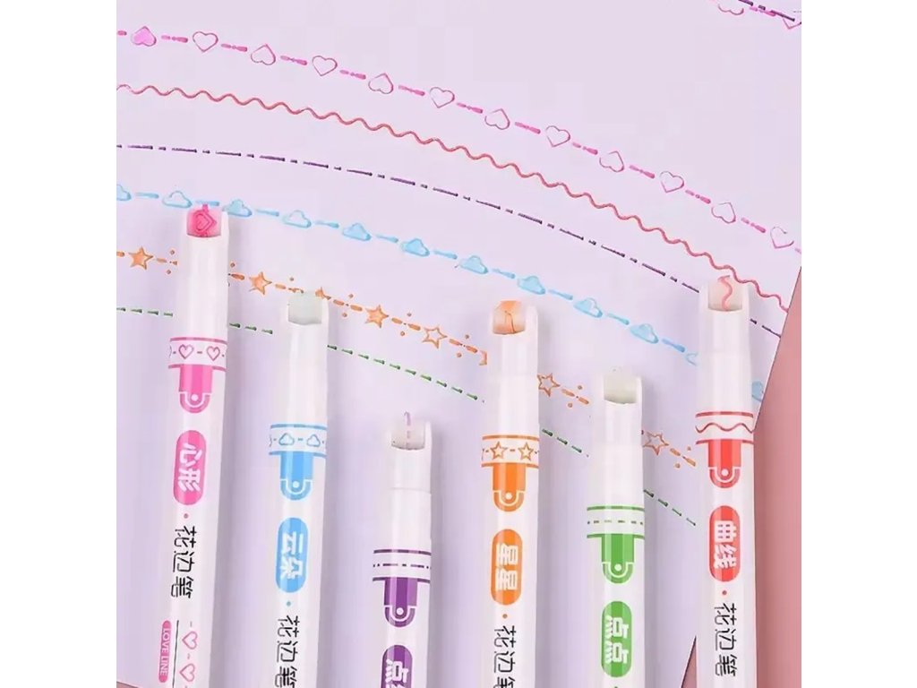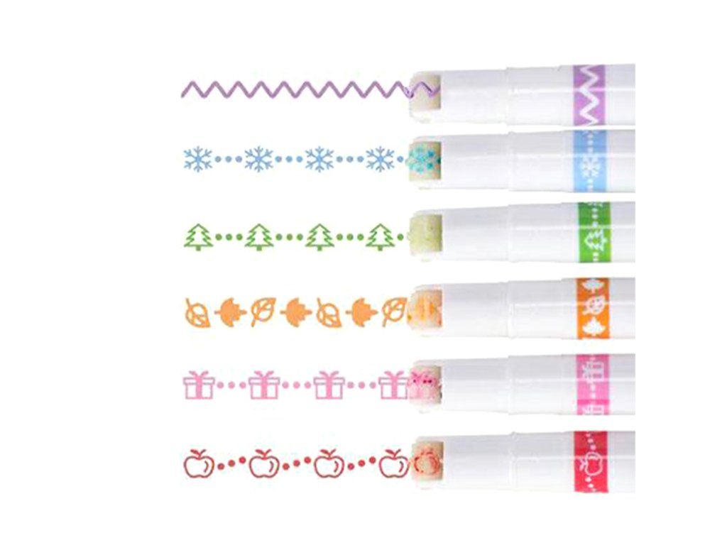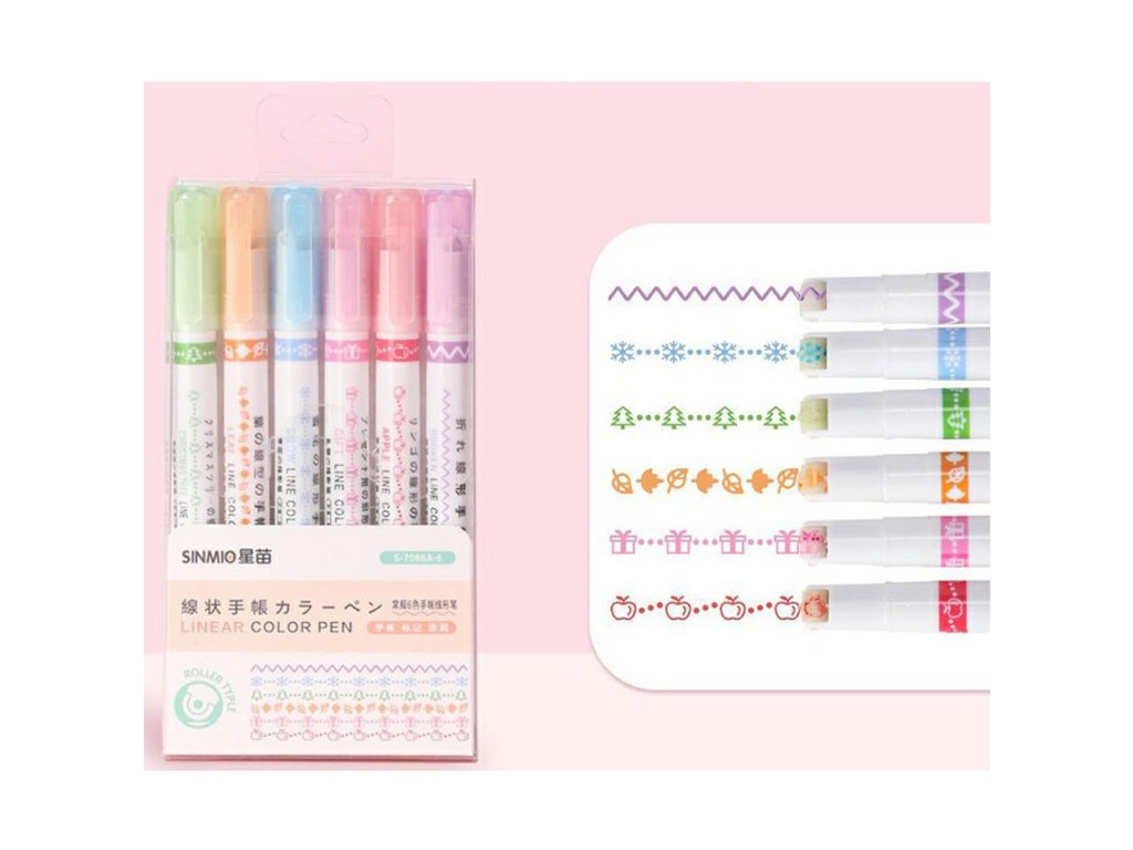 Sada 6 různých barevných fixů. Každý fix maluje jiný vzor. Atraktivní vzhled vzorů povzbudí děti, aby se naučily psát. Jsou ideální pro zvýraznění poznámek nebo vytváření dekorací. Ergonomický tvar umožňuje pohodlné používání pera. Inkoust rychle schne, takže se poznámky nerozmazávají.