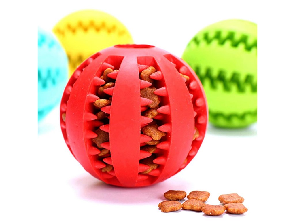 Silikonová žvýkací hračka pro psy. Pomáhá udržovat správnou ústní hygienu našeho mazlíčka. Míč má speciální otvory, do kterých můžete umístit oblíbené pamlsky vašeho mazlíčka. Jedná se o odolnou a extrémně užitečnou hračku, která je vhodná i na aportování.