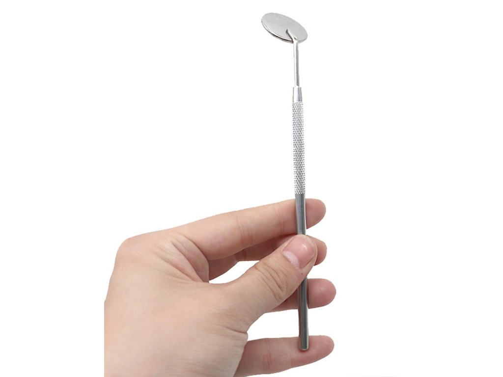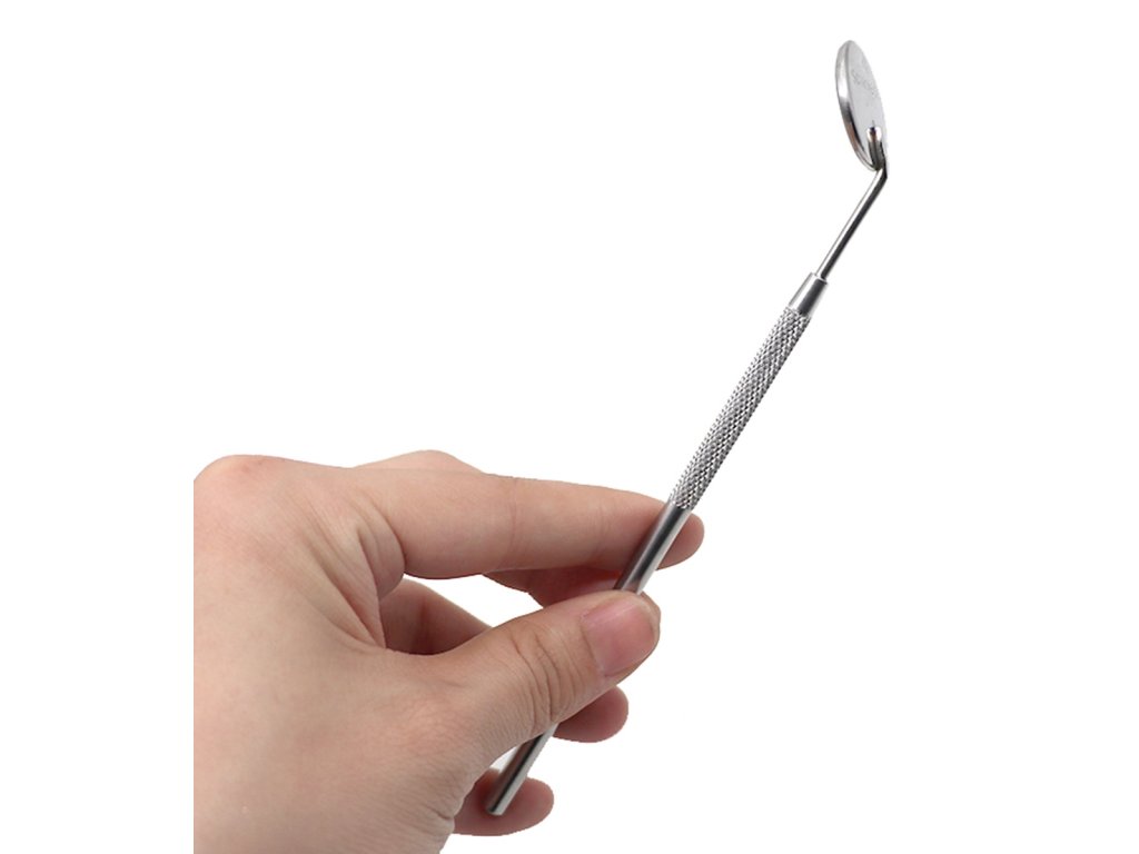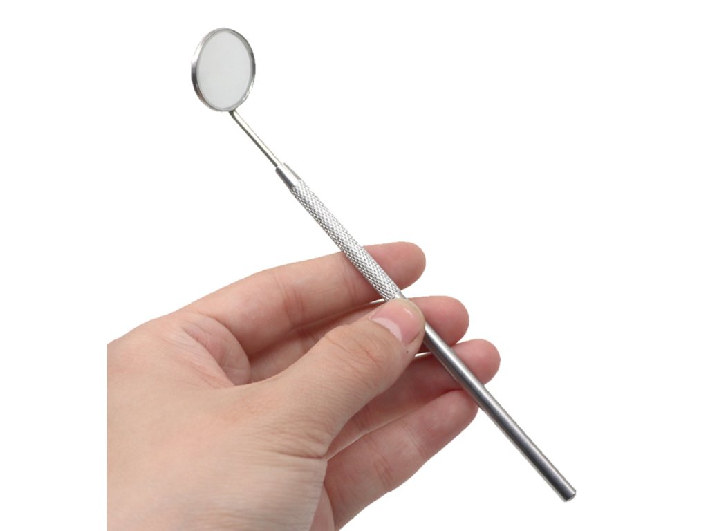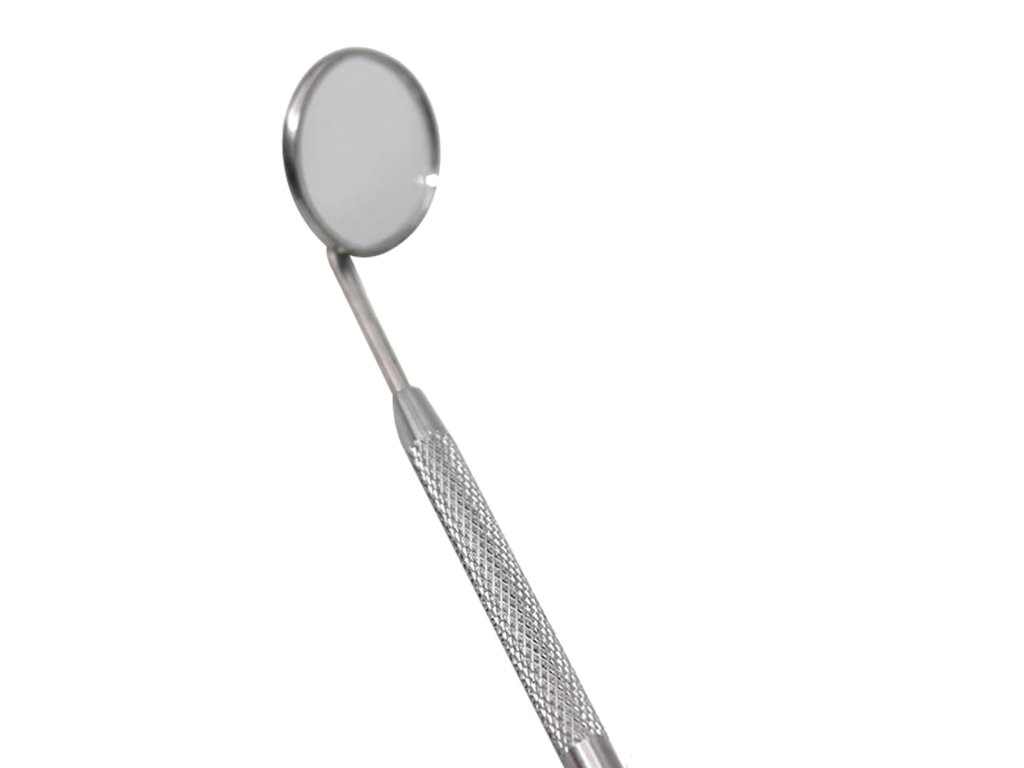 Profesionální zubní zrcátko. Povinná výbava každého zubaře. Vyrobeno z pevné nerezové oceli. Dlouhá rukojeť se zdrsněnou rukojetí usnadňuje manévrování při práci. Vyměnitelné zvětšovací zrcátko umožňuje důkladné vyšetření dutiny ústní a stavu chrupu.