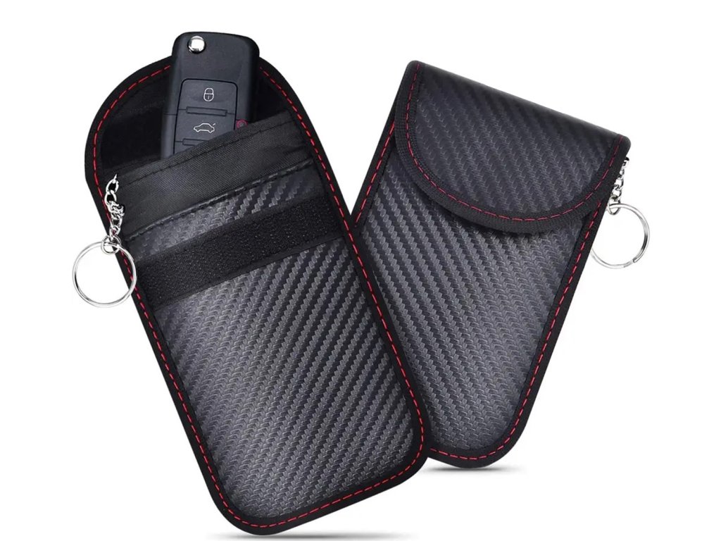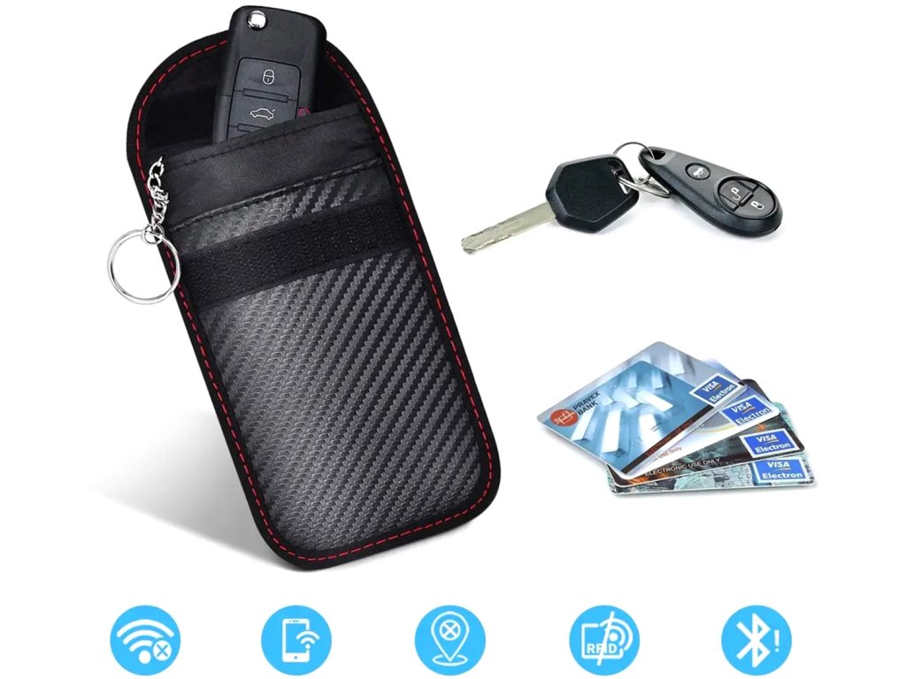 Pouzdro proti krádeži na platební karty a klíče od auta. Účinně chrání vaše peníze na vaší bankomatové kartě a kódu dálkového ovládání před zkopírováním. Kryt má speciální vrstvu (screen), která zabraňuje vyzařování vln. Funguje jako klasická Faradayova klec a blokuje kartu a signál dálkového ovládání. Vybaveno karabinou, která usnadňuje připevnění pouzdra na vhodné místo, a zapínáním na suchý zip.