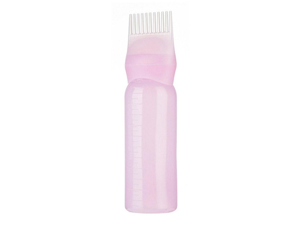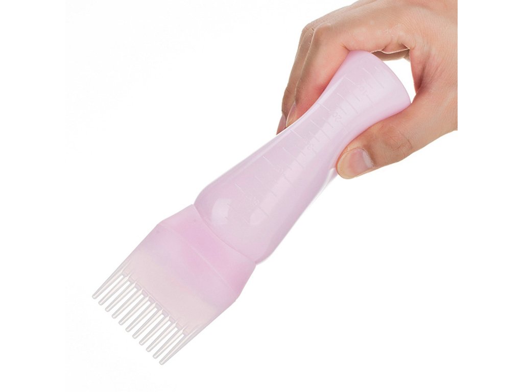 - Lahvička s hřebenem pro nanášení barviv a kondicionérů.