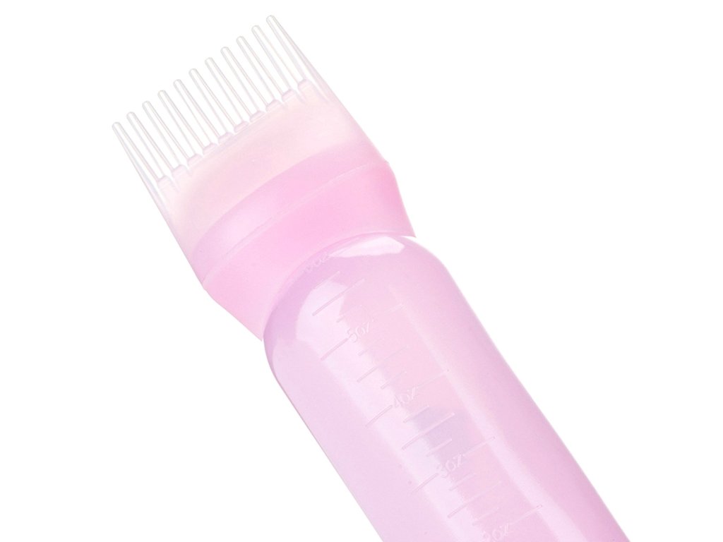 Lahvička s hřebenem pro nanášení barev na vlasy a kondicionérů. Široce rozmístěné zuby netrhají ani nelámou vlasy. Nezbytný nástroj pro každého kadeřníka.