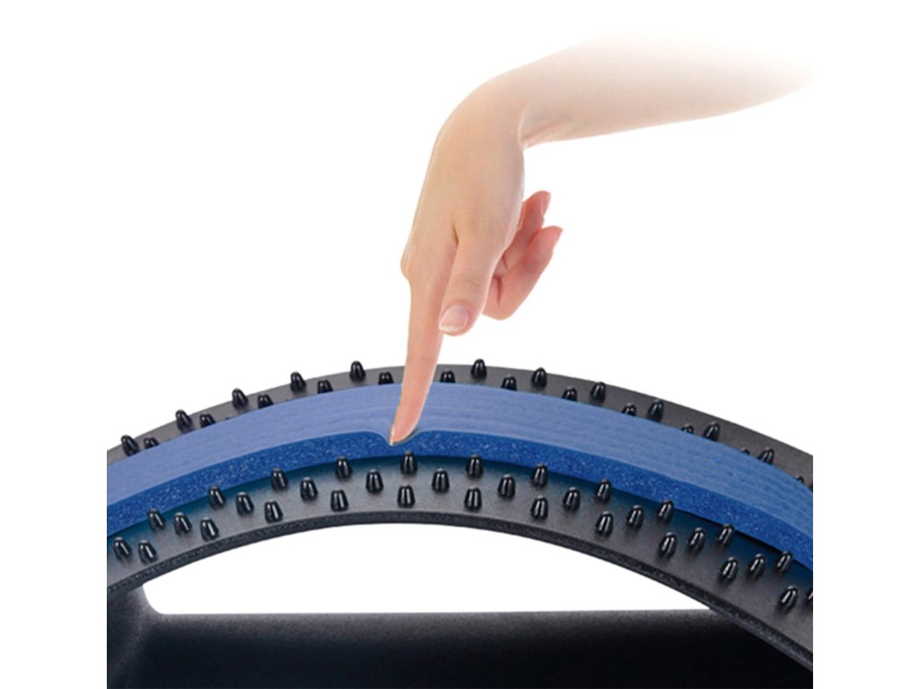Kompaktowy przyrząd do rozciągania i masażu pleców. Skutecznie rozmasowuje bolący kręgosłup dzięki łukowatemu kształtowi dopasowanemu do jego fizjologii. Wyposażony w aż 96 wypustek masujących działających podobnie do klasycznej akupresury. Możliwość 4-stopniowej regulacji wysokości pozwala na wygodne rozciąganie się zależnie od stopnia posiadanej lordozy oraz poziomu rozciągnięcia.