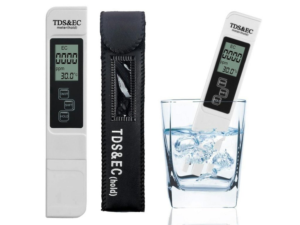 - Funkce: TDS (celkové rozpuštěné látky - množství znečišťujících látek rozpuštěných ve vodě) / EC (vodivost vody)