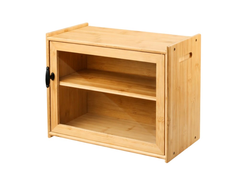 - Stabilní konstrukce: horní část chlebníku lze použít jako poličku na koření, sklenice nebo kuchyňské doplňky.