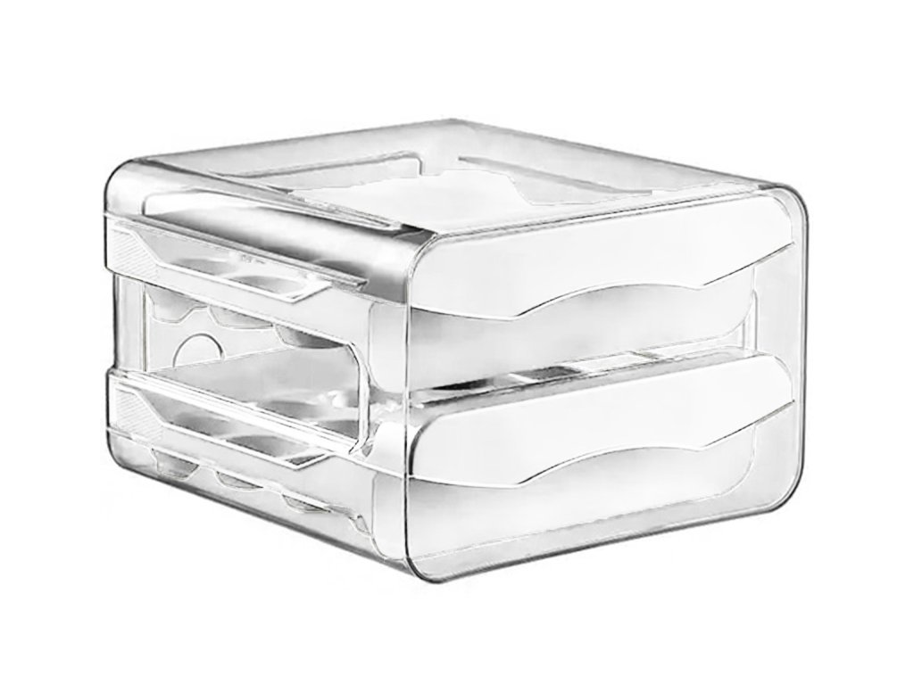 Pohodlná nádoba na skladování vajec. Kompaktní provedení se dvěma zásuvkami (každá má 4 řady). Vhodné tvarování řad ztěžuje rozbíjení vajec. Zásuvky vybavené výřezy, které usnadňují jejich otevírání a zavírání.Vlastnosti a specifikace produktu: