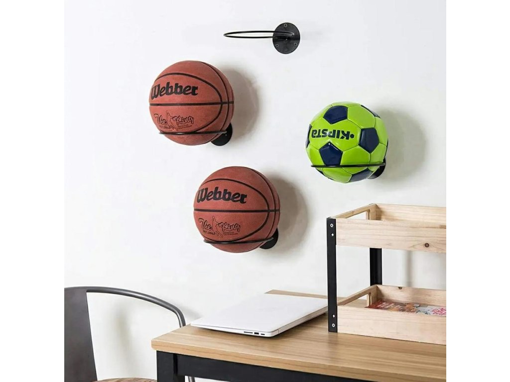 Univerzální kovový nástěnný věšák. Pevně vyrobené a snadno sestavitelné. Sada obsahuje všechny prvky, jako jsou hmoždinky a šrouby. Rukojeť je připevněna ve třech bodech, což zajišťuje skvělou stabilitu. Perfektní pro uložení míčů, čepic nebo přileb.