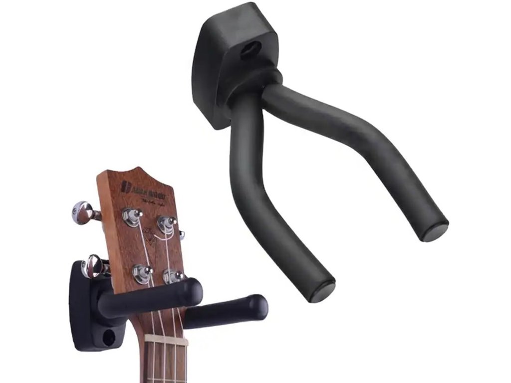 Univerzální, nástěnný kytarový věšák. Umožňuje bezpečné a pohodlné uložení nástrojů různých typů a velikostí. Skvělý tip na dárek pro každého kytaristu! Perfektní pro uložení všech typů akustických, klasických, elektrických a basových kytar. Promyšlená konstrukce zajišťuje pevný a bezpečný úchop. Díky použití pevných materiálů máte zaručeno, že kytara bude viset stabilně na svém místě. Způsob výroby ramínka nezpůsobí škrábance nebo poškození kytary.