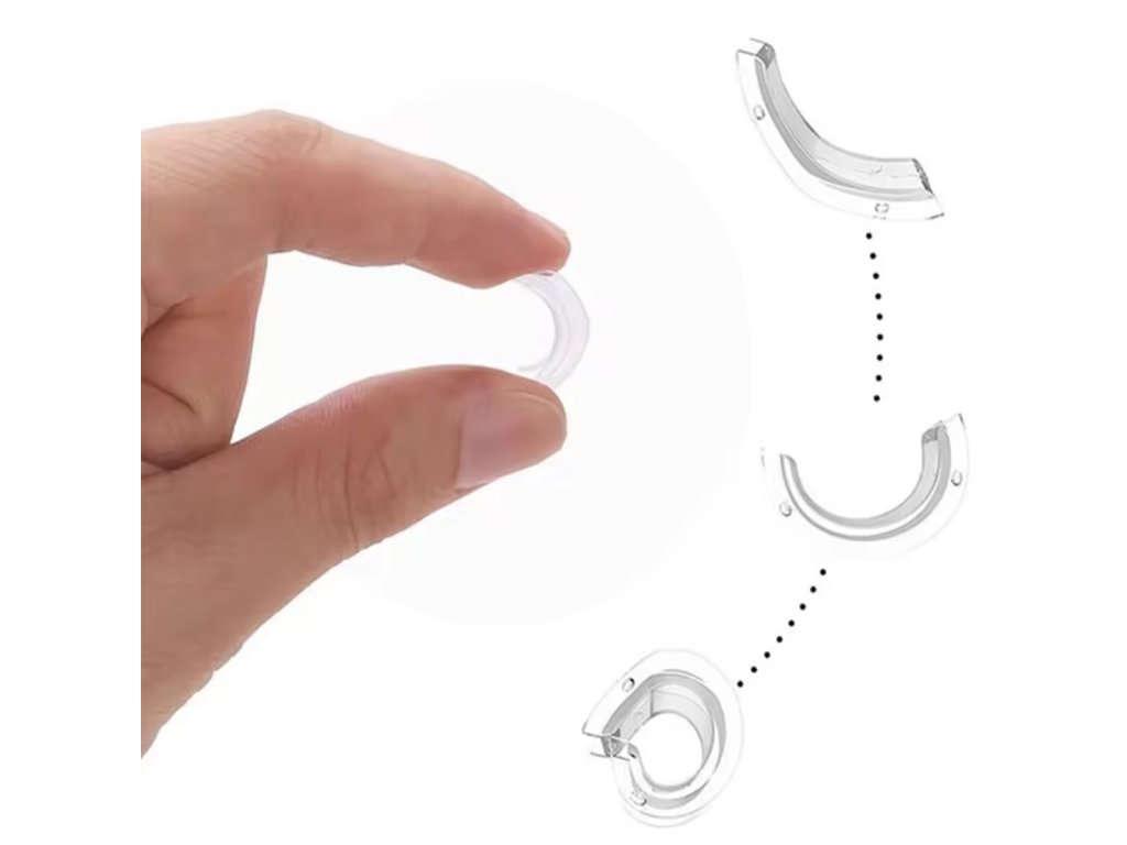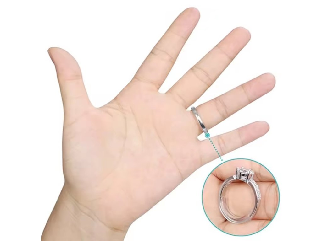 - Průhledný silikon perfektně drží na prstu a je neviditelný pod šperky.