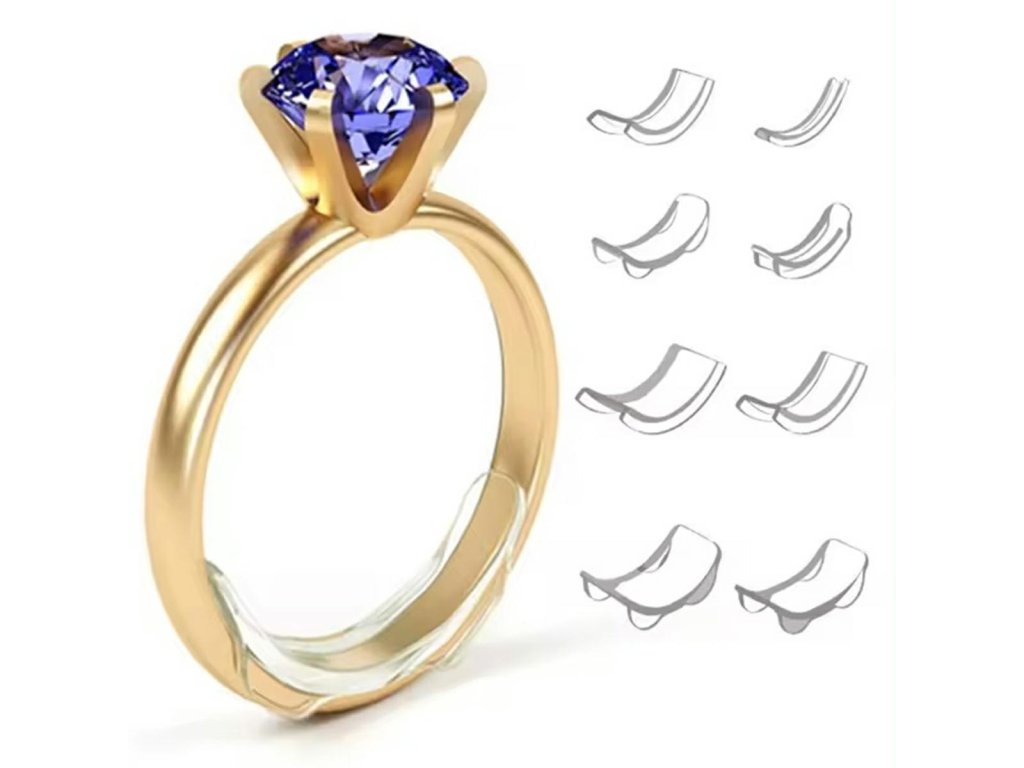 Neviditelný nastavovač velikosti prstenu - sada 8 kusů. Produkt, který umožňuje okamžitě upravit velikost snubního prstenu podle obvodu vašeho prstu. Není třeba drahé zmenšování ani návštěva klenotníka. Průhledný silikon perfektně drží na prstu a je neviditelný pod šperky. Sada obsahuje až 8 různých šířek (od 2 do 9,5 mm).