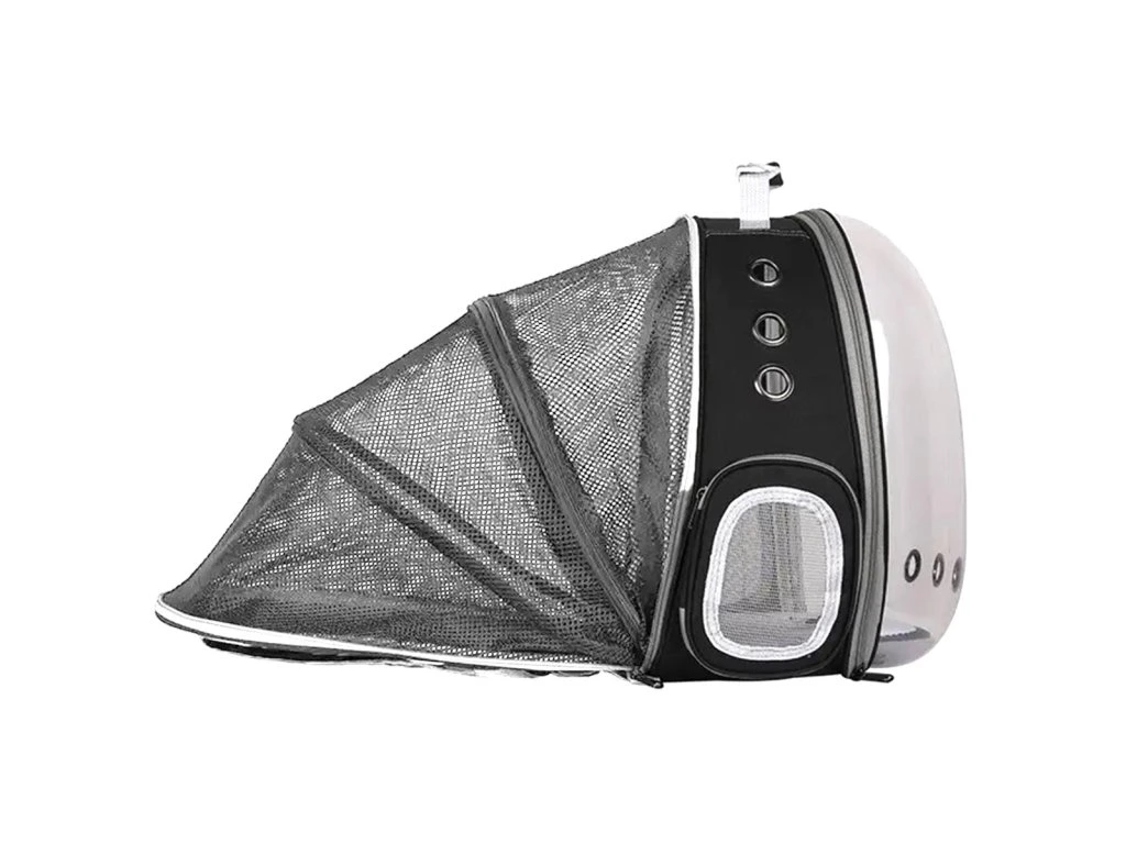 - Průhledná přední stěna minimalizuje stres zvířete spojený s jeho nošením.