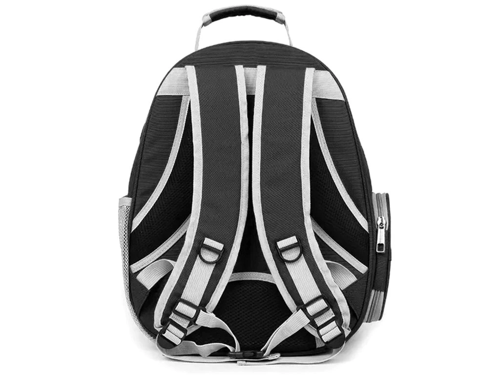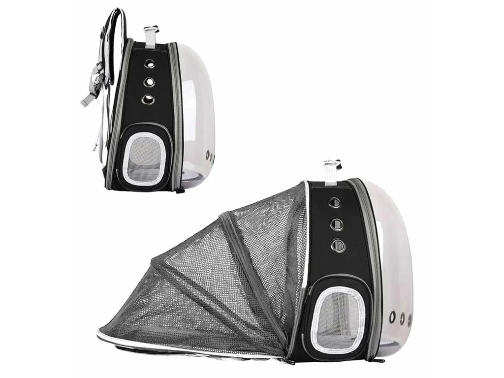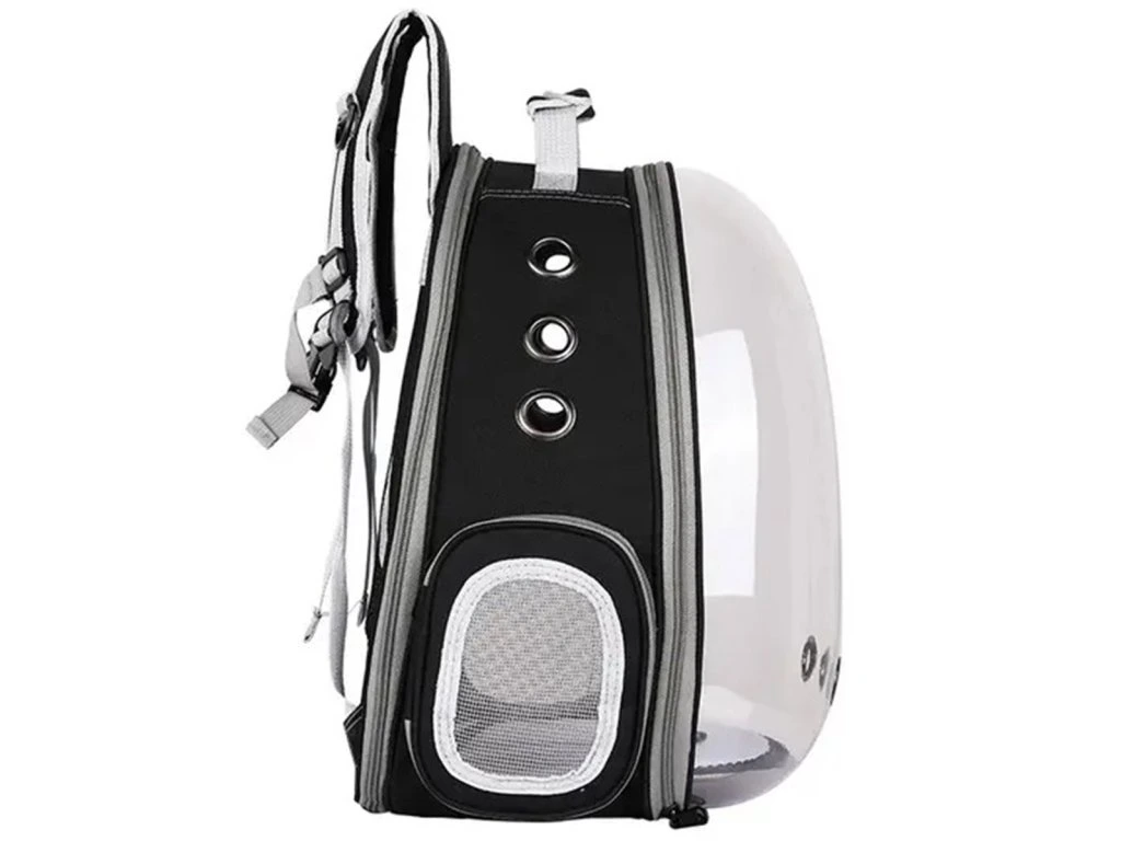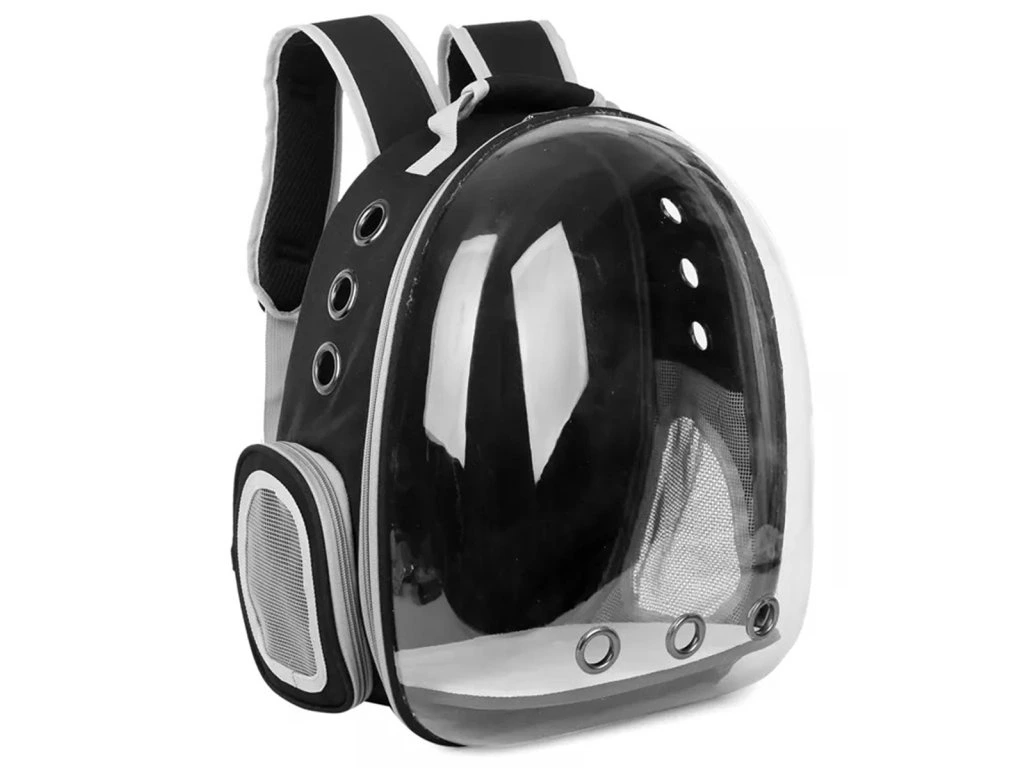 Kvalitní taška na přenášení pro malé mazlíčky ve formě batohu. Ideální pro přenášení vaší kočky nebo králíka na jakoukoli vzdálenost. Zadní díl lze vyklopit, čímž se výrazně zvětší prostor pro našeho mazlíčka. Extrémně pohodlné provedení poskytne pohodlí vám i zvířeti. Pevný materiál, ze kterého je nosič vyroben, stejně jako pevná rukojeť a nastavitelné zádové popruhy zajišťují dlouhé a bezproblémové používání výrobku. Taška je vzdušná a bezpečná pro našeho mazlíčka díky ventilačnímu systému. Pohodlí používání zajišťuje také dvojitý zip na obou stranách nosiče a dva způsoby otevírání (zcela nebo s otvorem na boku). Další boční kapsa umožňuje nosit vodu pro vašeho mazlíčka. Průhledná stěna vpředu zajišťuje přenášenému zvířeti kontakt se světem a minimalizuje stres spojený s nošením.