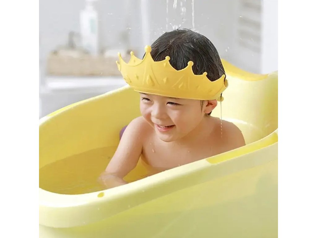 Koupací kšilt – nezbytný při koupání každého malého dítěte. Dokonale sedí na hlavičce dítěte, díky nastavitelnému zapínání, chrání oči malého před postříkáním. Vyrobeno z pevného plastu (PP + TPE), bezpečné při kontaktu s pokožkou.