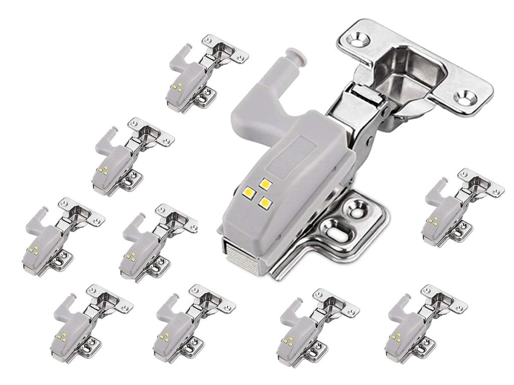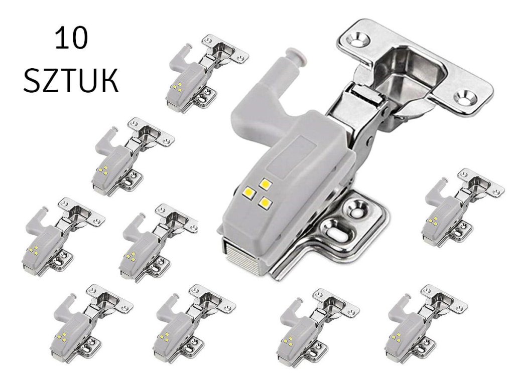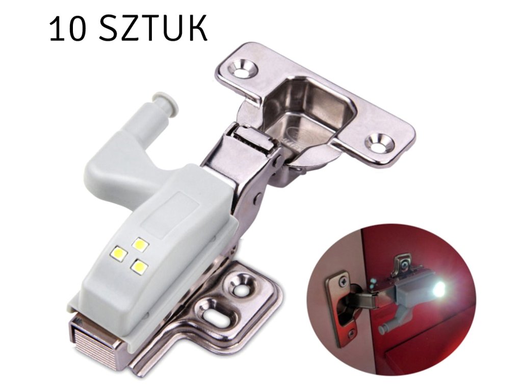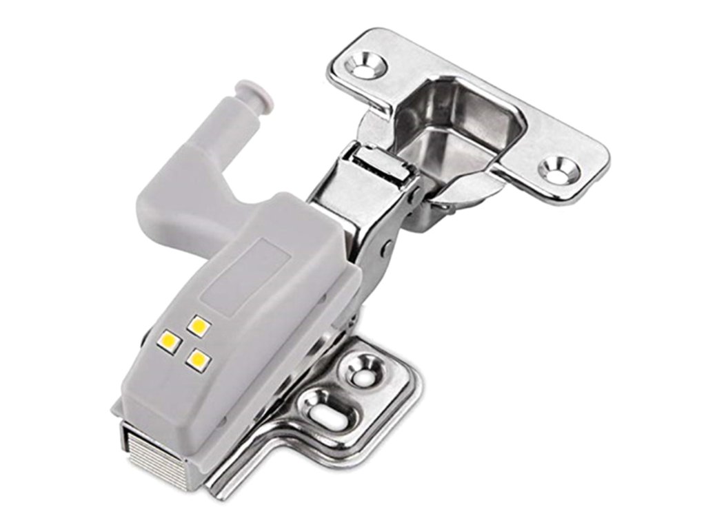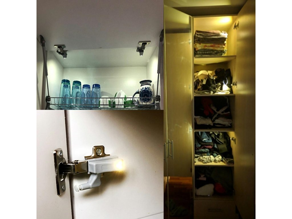 Kompaktní LED lampa pro montáž na pant uvnitř skříňky. Univerzální držák na panty (součástí balení). Je napájen 1 baterií A23, která zajišťuje dlouhou životnost. Vybaveno 3 jasnými a energeticky úspornými LED diodami s funkcí automatického zapnutí a vypnutí při každém otevření a zavření skříňky.