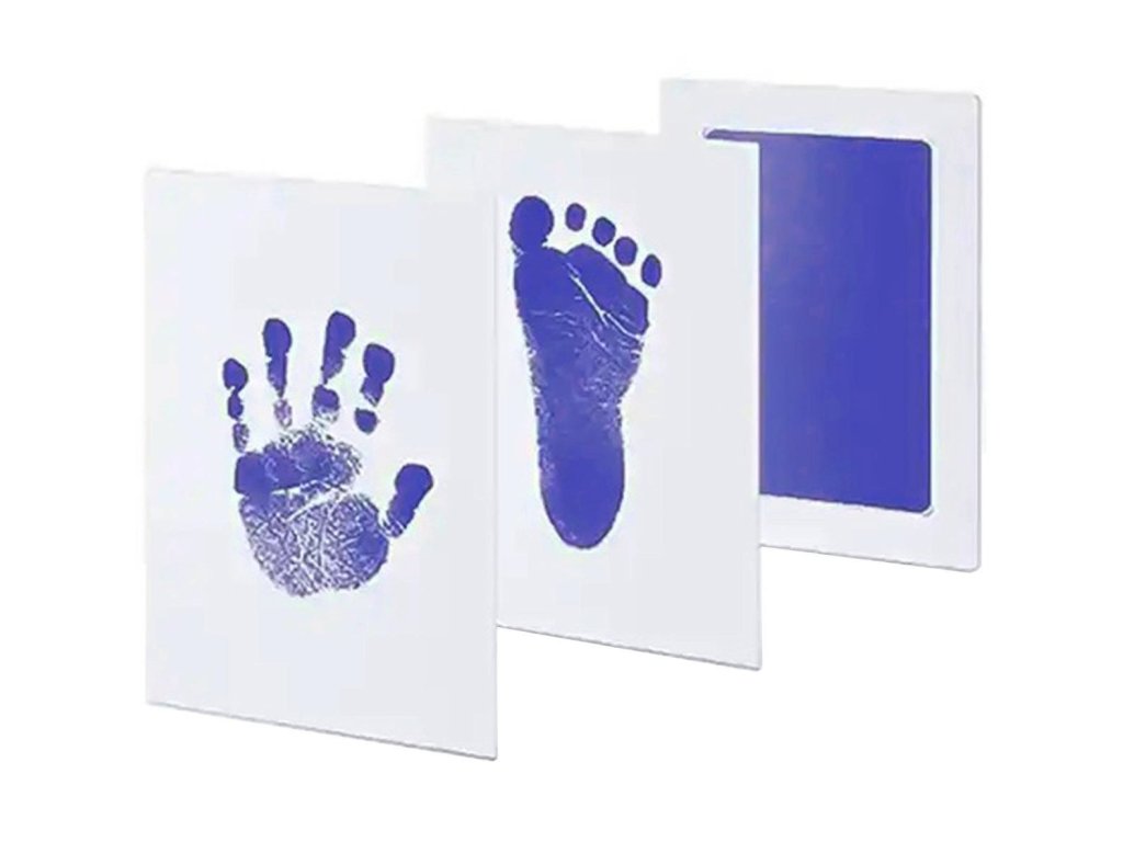 Sada na otisky rukou nebo nohou, která nezanechává skvrny. Je to rychlý a snadný způsob, jak si po narození dítěte vytvořit jedinečný suvenýr :) Tento produkt je zcela bezpečný pro děti. Aršík má ochrannou fólii, která zabraňuje kontaktu inkoustu s pokožkou. Inkoust odolný vůči povětrnostním vlivům zajišťuje, že váš suvenýr vydrží roky a nevybledne na světle.