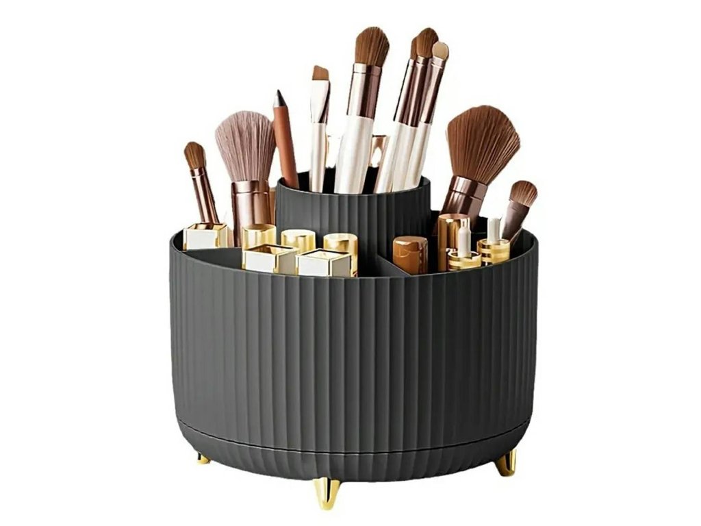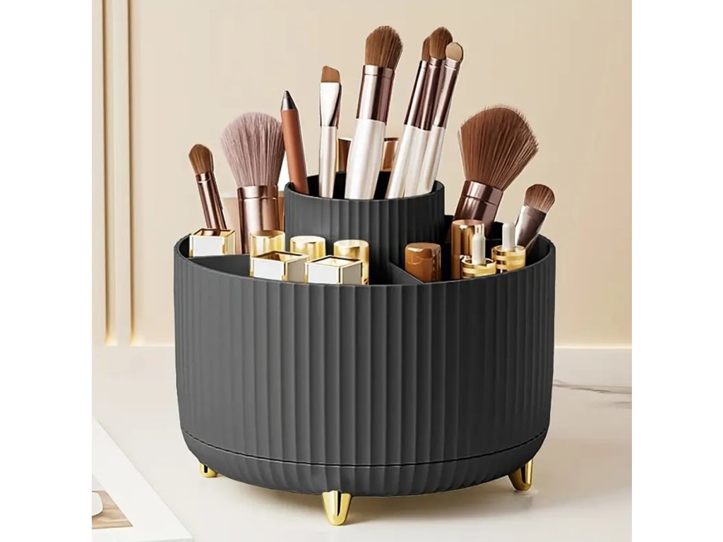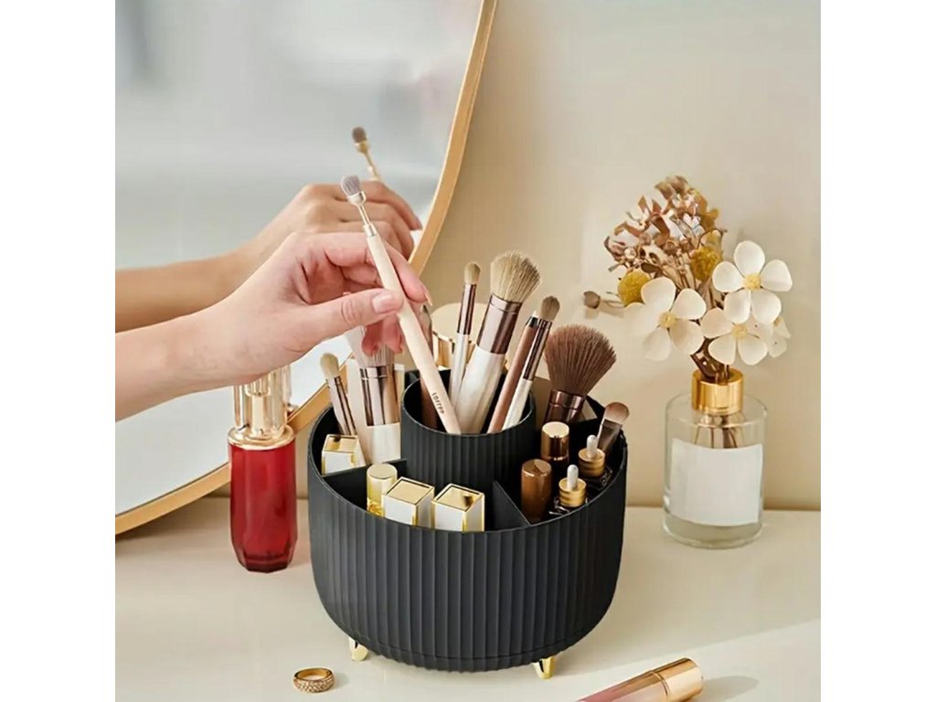 - Extrémně praktický, otočný organizér na štětce a kosmetiku s pěti nezávislými přihrádkami.