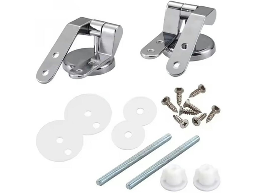 - Chromované kovové montážní panty pro toaletní sedátko.