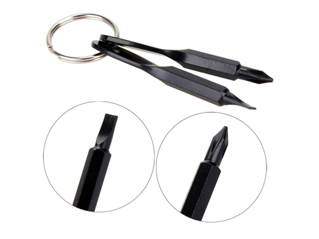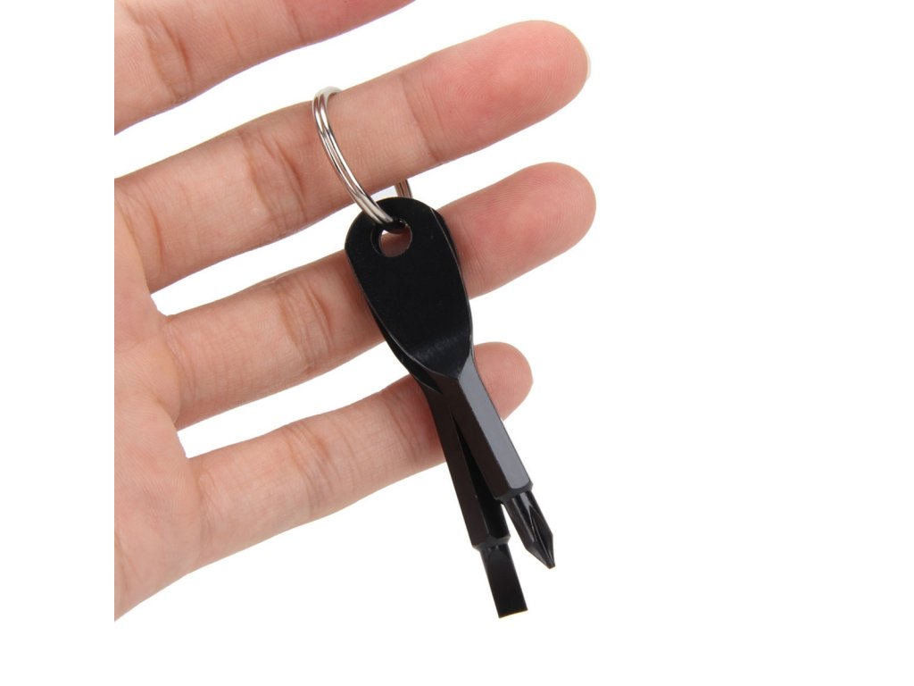 Funkční klíčenka v podobě dvou klíčů. Každý z nich je funkční šroubovák (plochý a křížový). Lze pohodlně připevnit na opasek nebo jiné klíče (včetně kroužku).