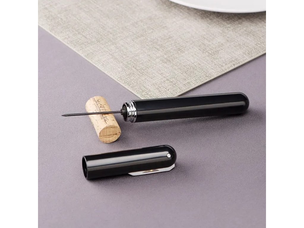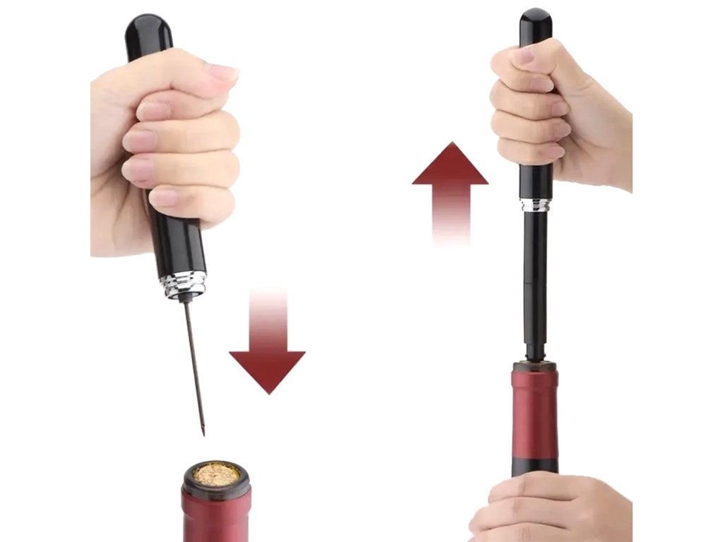 Praktická vývrtka na tlakové lahve. Mimořádná pomůcka, která usnadňuje otevírání vína pomocí jehly(bez použití síly). Pevná konstrukce zaručuje dlouhodobé používání. Vybaven přídavným nožem pro řezání fólie. Otvírák pasuje na všechny standardní korkové zátky. Nevyžaduje další napájení. Ideální dárek pro každého více či méně pokročilého milovníka vína.Vlastnosti a specifikace produktu: