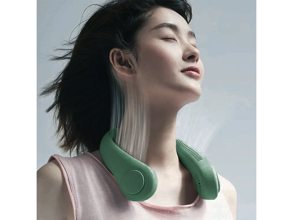Bezlopatkový, kompaktní přenosný ventilátor. Promyšlená konstrukce ve tvaru sluchátek umožňuje pohodlné zavěšení na krk. Skvěle se hodí na cesty, ale i pro domácí použití (díky zabudovanému stojánku). Napájení z vestavěné baterie, nabíjení přes USB kabel. Možnost nastavení průtoku vzduchu (3 rychlosti). Nenahraditelný při práci u počítače v horkých dnech.