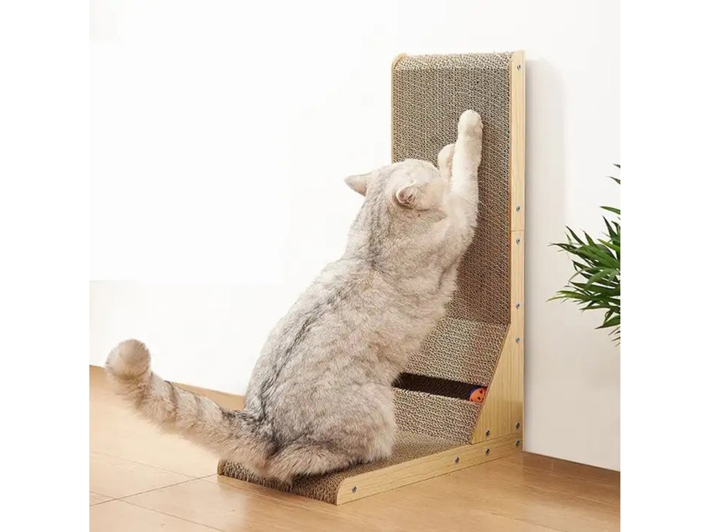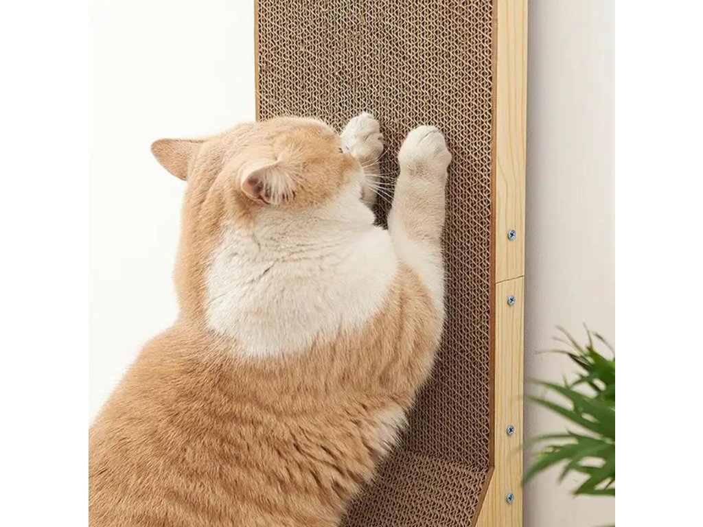 Pevné rohové škrabadlo pro kočku doplněné o hračku (míč). Vyrobeno ze speciální vlnité lepenky, která prodlužuje jeho životnost. Speciální otvory v kartonu vám umožní naplnit škrabadlo kočičí trávou. Bude se líbit i těm nejvybíravějším kočkám :) Stabilní dřevěná základna zabraňuje převrácení. Poskytuje našemu mazlíčkovi spoustu radosti na dlouhé hodiny (a chvíli oddechu pro majitele :) Sada obsahuje přídavný sáček na catnip a šroubovák s montážními prvky.