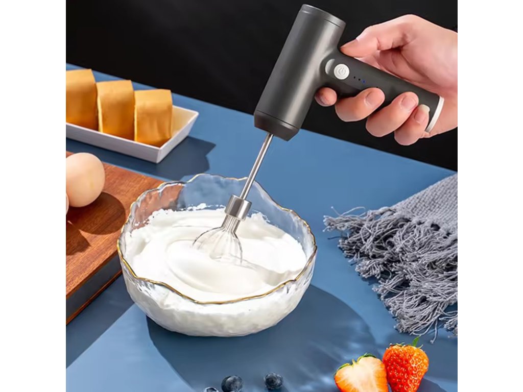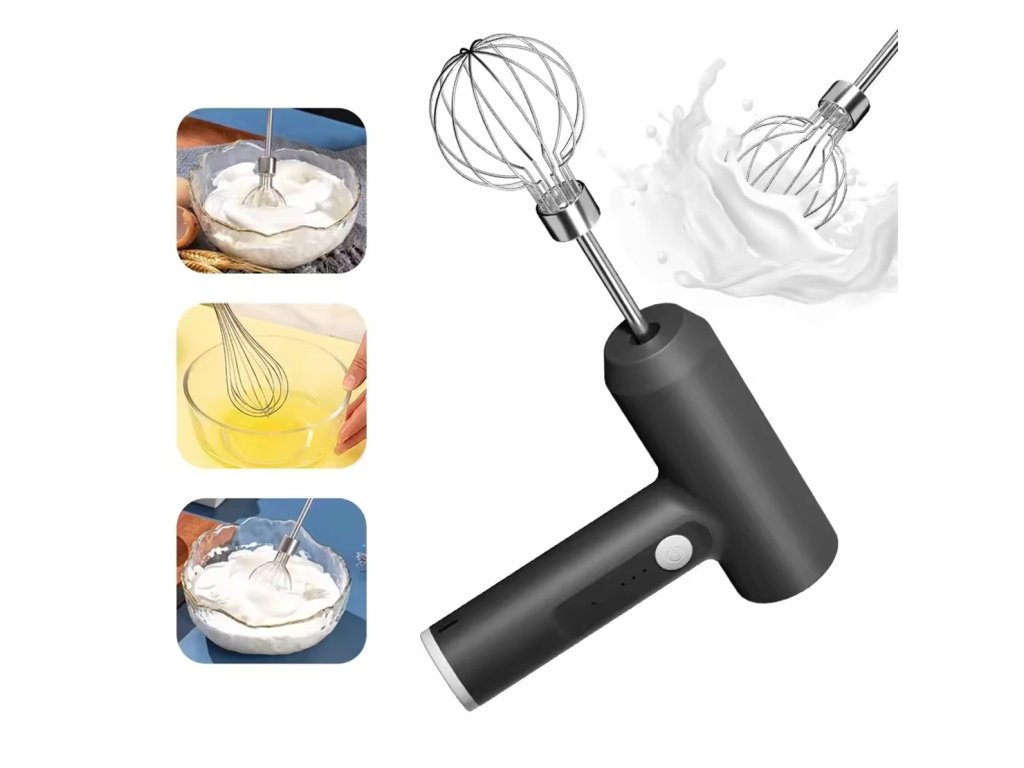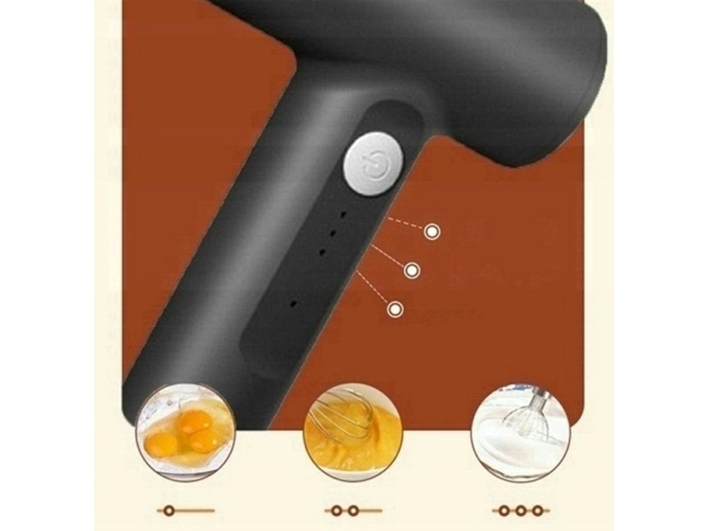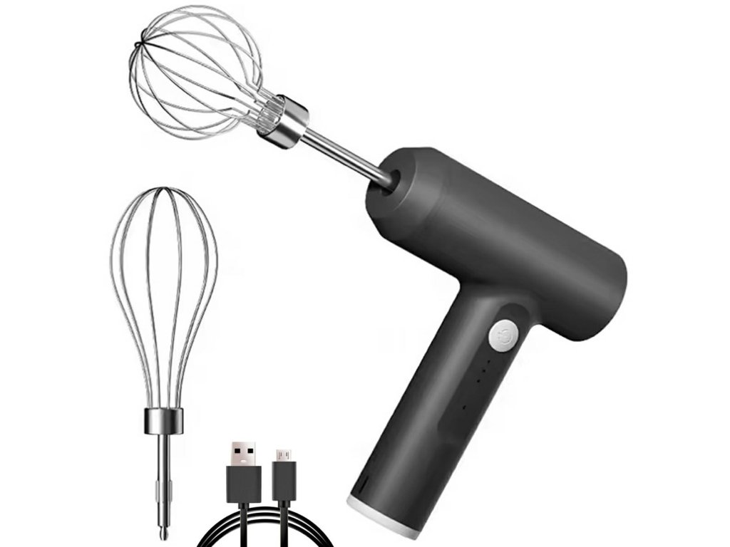 - Elektrický ruční kuchyňský mixér s vestavěnou baterií.