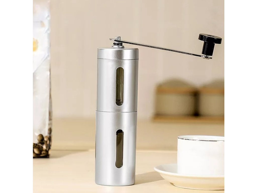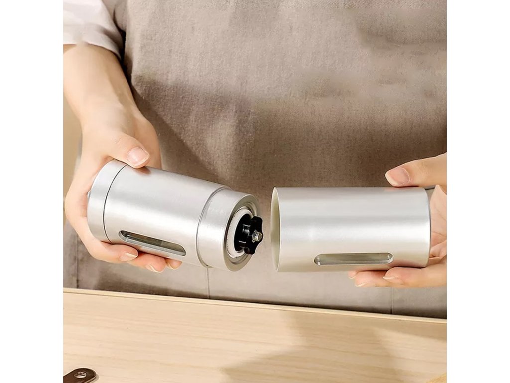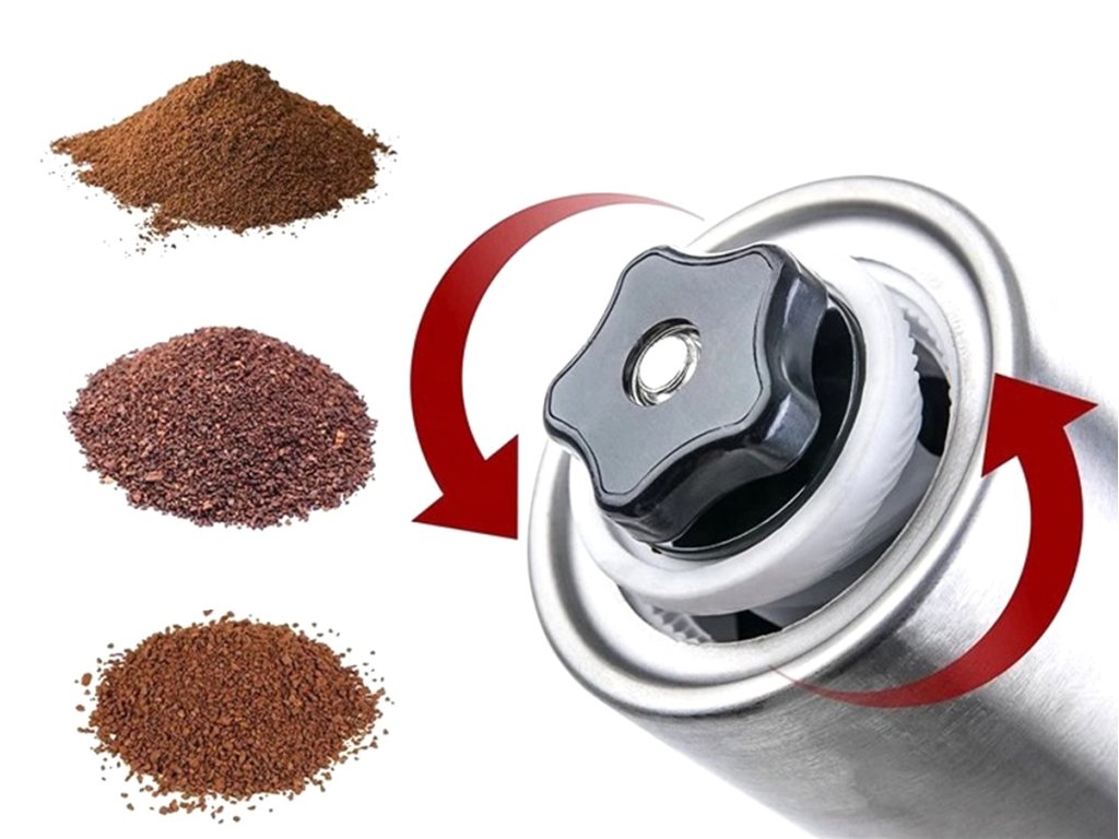 - Ruční, ocelový mlýnek na kávu s nastavitelným otřepům.