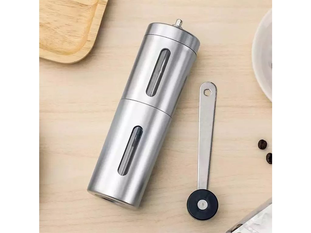 Ruční, ocelový mlýnek na kávu vybavený nastavitelným otřepům. Nastavení úrovně mletí umožňuje namlít zrna na požadovanou velikost. Štíhlý pevný kryt z nerezové oceli zajišťuje dlouhodobé a bezproblémové používání zařízení. Dodatečné průhledové okénko ve spodní části mlýnku umožňuje kontrolovat množství namleté kávy.