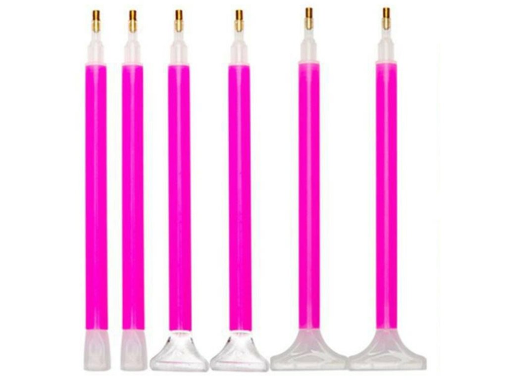 - Sada obsahuje 6 per s různými hroty, 2 pinzety, 4 diamantové tácky a 10 čtverečků lepidla.