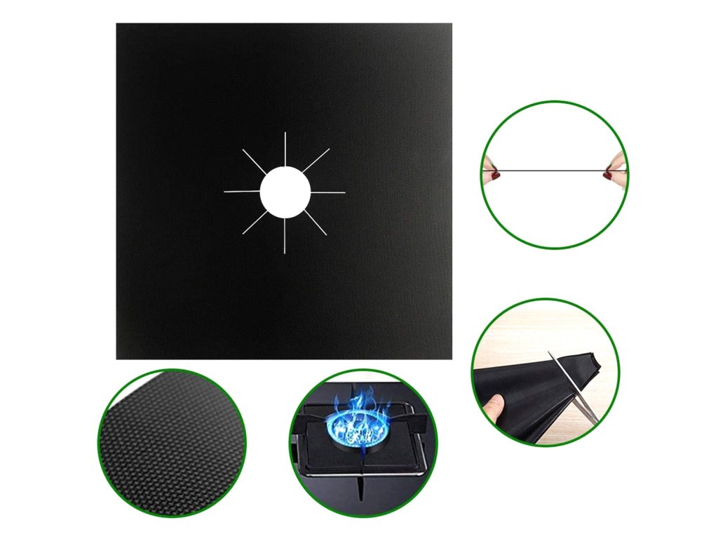 Teflonová podložka pod hořák plynového sporáku - opakovaně použitelná. Perfektní vychytávka, která vám pomůže udržet pořádek na horní straně plynového sporáku. Použití teflonu zajišťuje, že se jídlo nebo tuk při tepelné úpravě nelepí na podložku. Podložka je dostatečně lehká a flexibilní, aby se dala snadno srolovat a uložit. Lze jej použít ve sporáku a troubě a je vhodný do myčky nádobí.