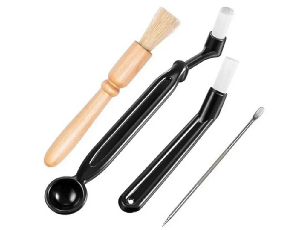 - Sada 3 kartáčů na čištění kávovarů a lžičky na zdobení latte.