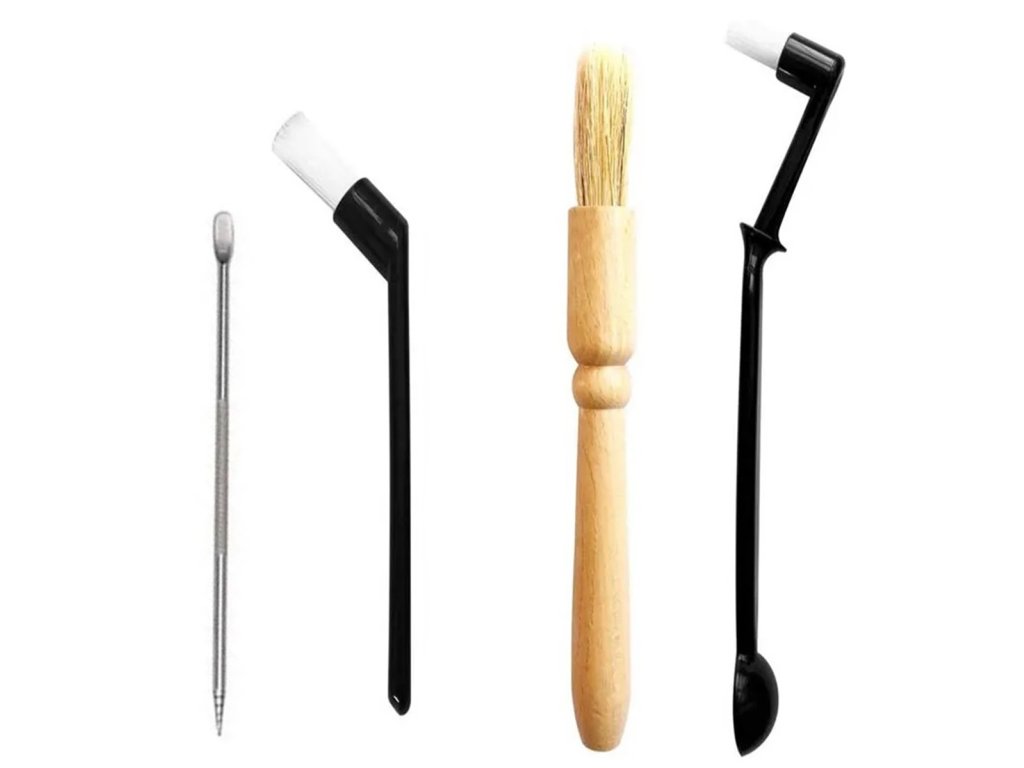 Sada 3 kartáčků na čištění kávovarů a lžičky na zdobení latte.
