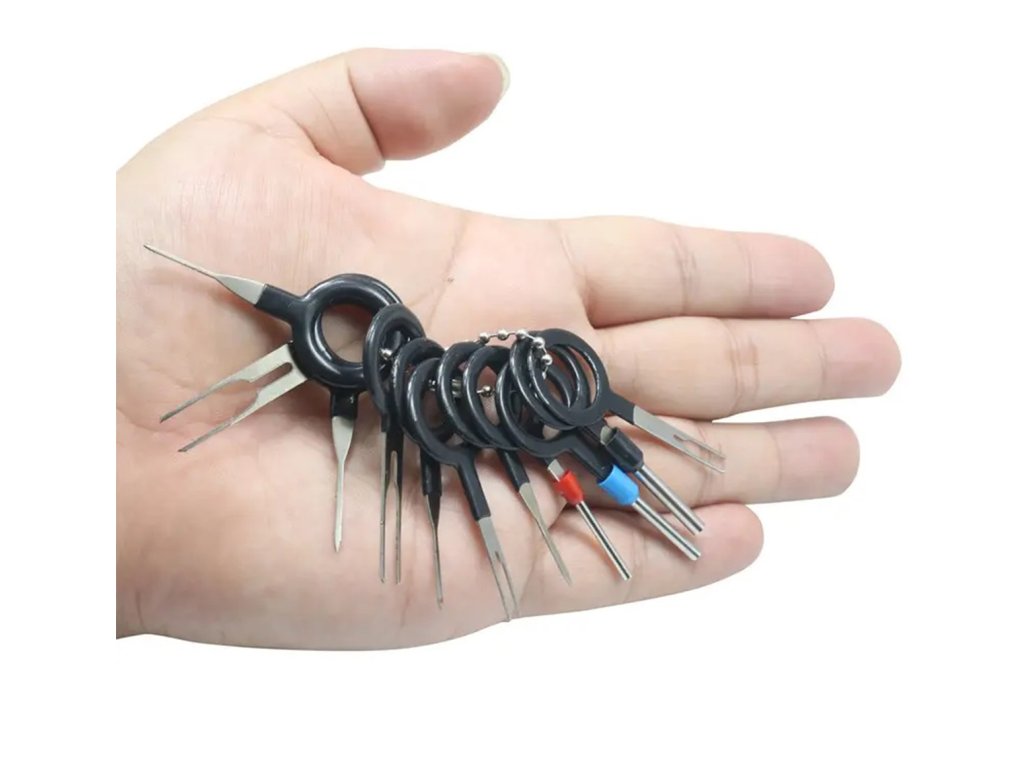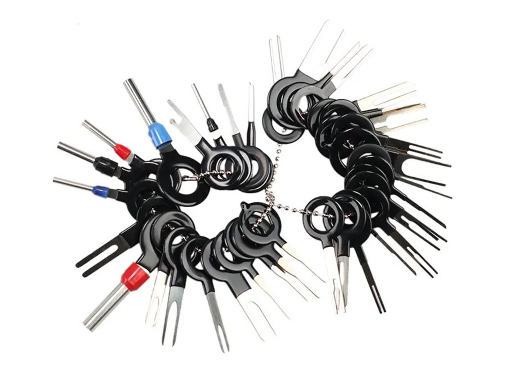 Univerzální sada 38 kusů klíčů pro vytahování čepů (spojek). Sada se skládá ze 4 typů klíčů (jednoduchý, dvojitý, trubkový a trojitý) různých průměrů. Jsou perfektní pro opravy elektrických a instalačních kostek. Povinná výbava pro všechny osoby zapojené do oprav automobilových elektrických systémů nebo počítačového vybavení.