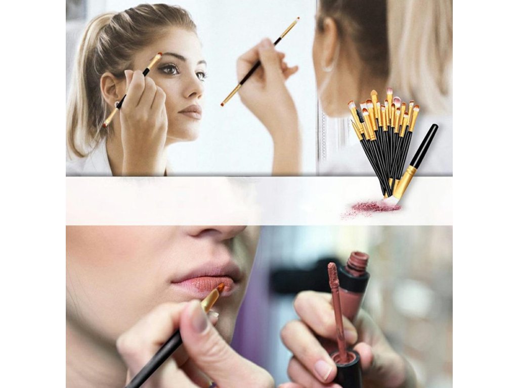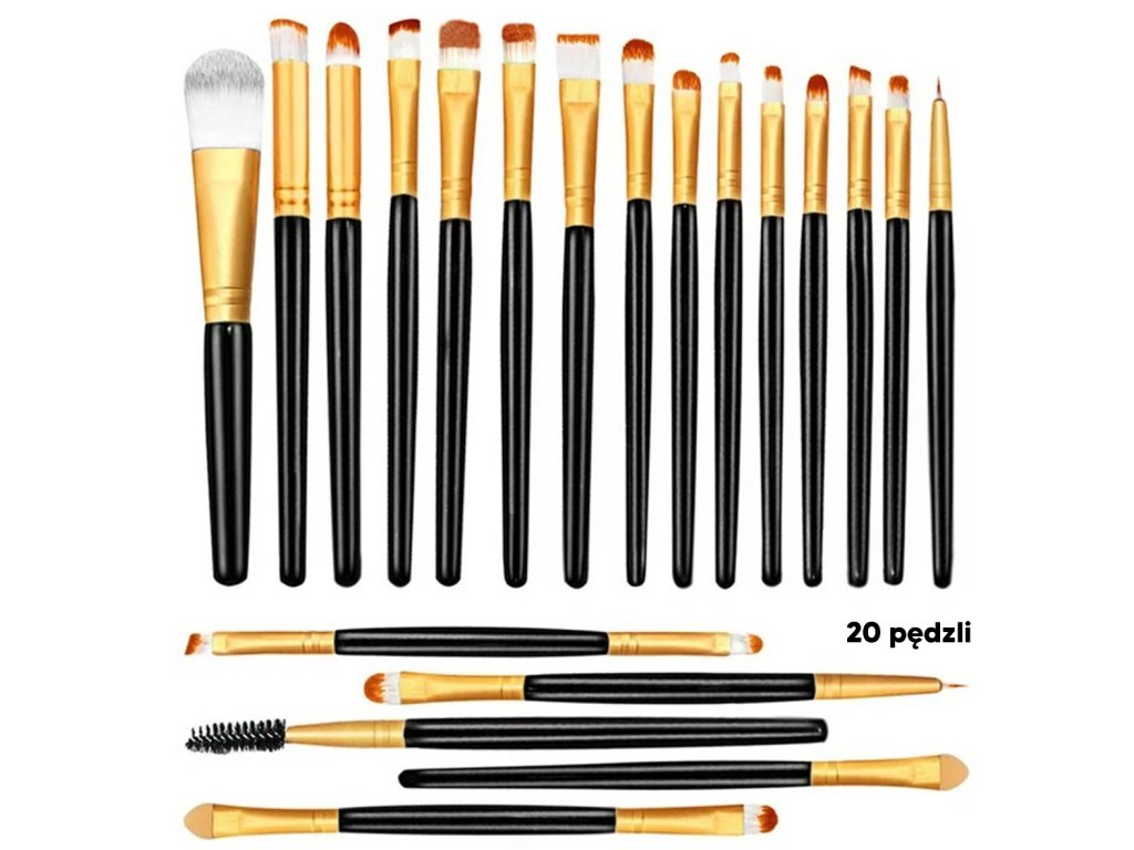 - Sada 20 štětců na make-up se syntetickými štětinami (nylon).