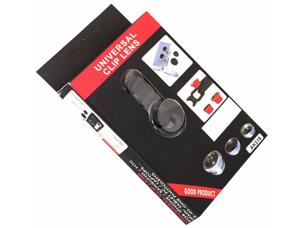 - Univerzální CLIP pro připevnění objektivu k zařízení - objektiv lze bezpečně nasadit na fotoaparát bez obav z poškození zařízení.