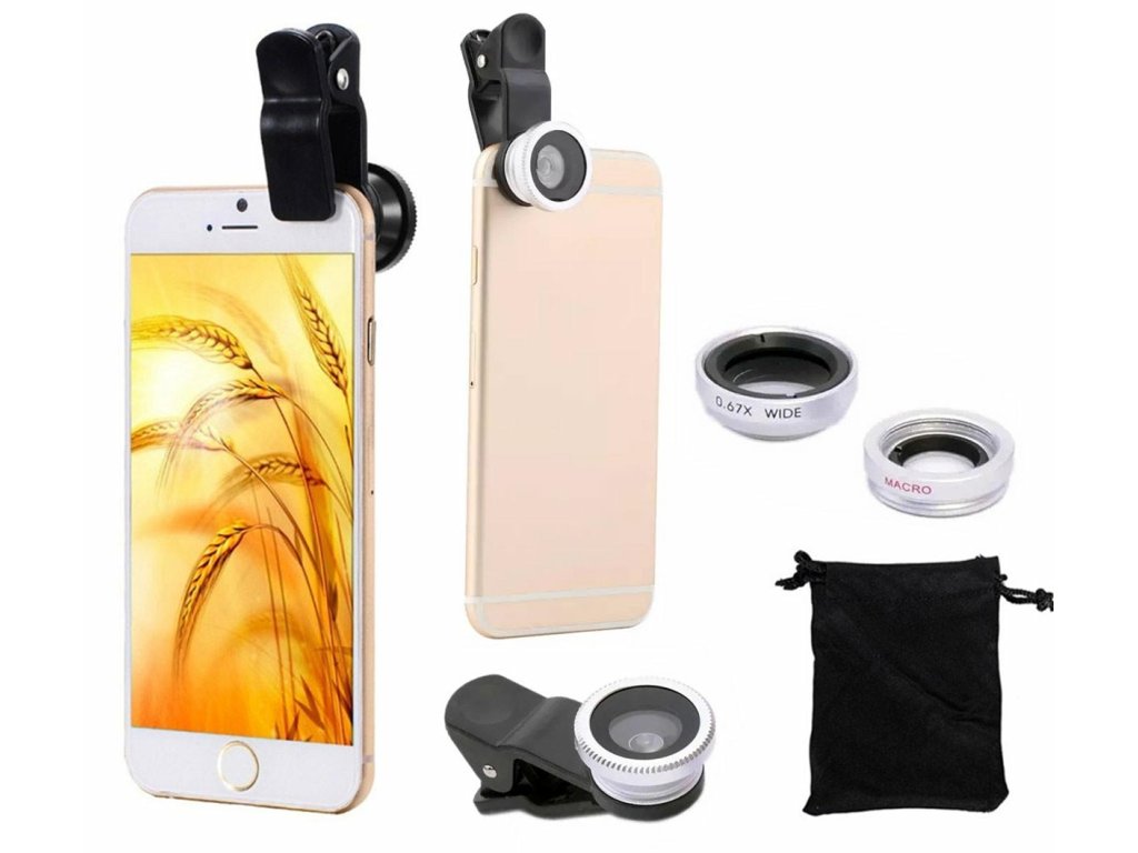 Sada 3 objektivů pro chytré telefony a tablety vybavených vestavěným fotoaparátem. Každý objektiv umožňuje dosáhnout jiného efektu zkreslení obrazu, což vám umožní snadno pořizovat fenomenální fotografie! Stačí nasadit jednu z požadovaných čoček na oko fotoaparátu vašeho telefonu pomocí klipu, který je součástí sady! Poté na zařízení spustíme aplikaci fotoaparátu a je to!