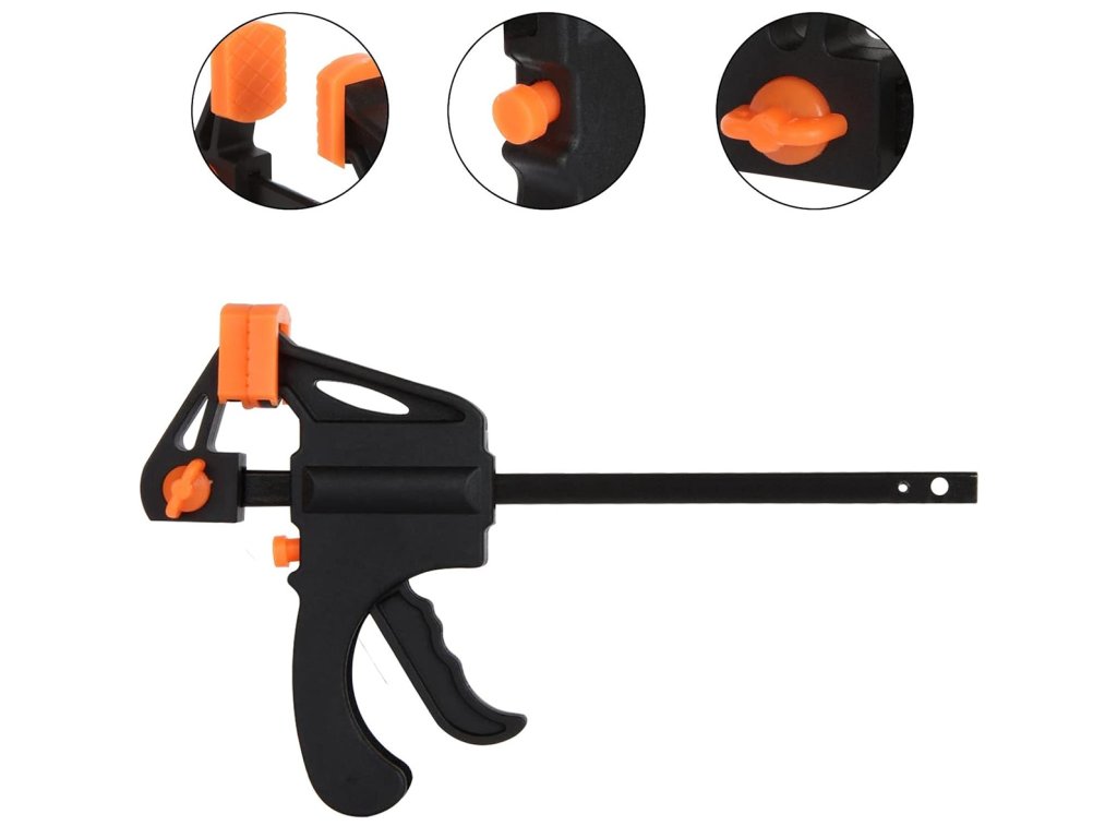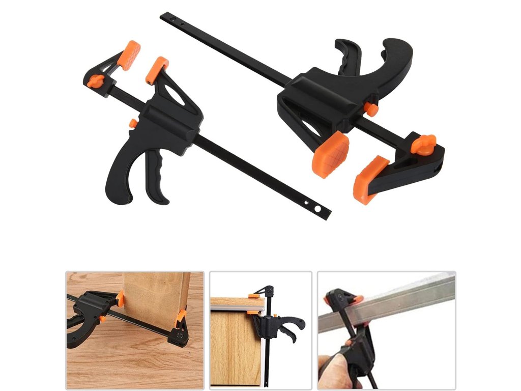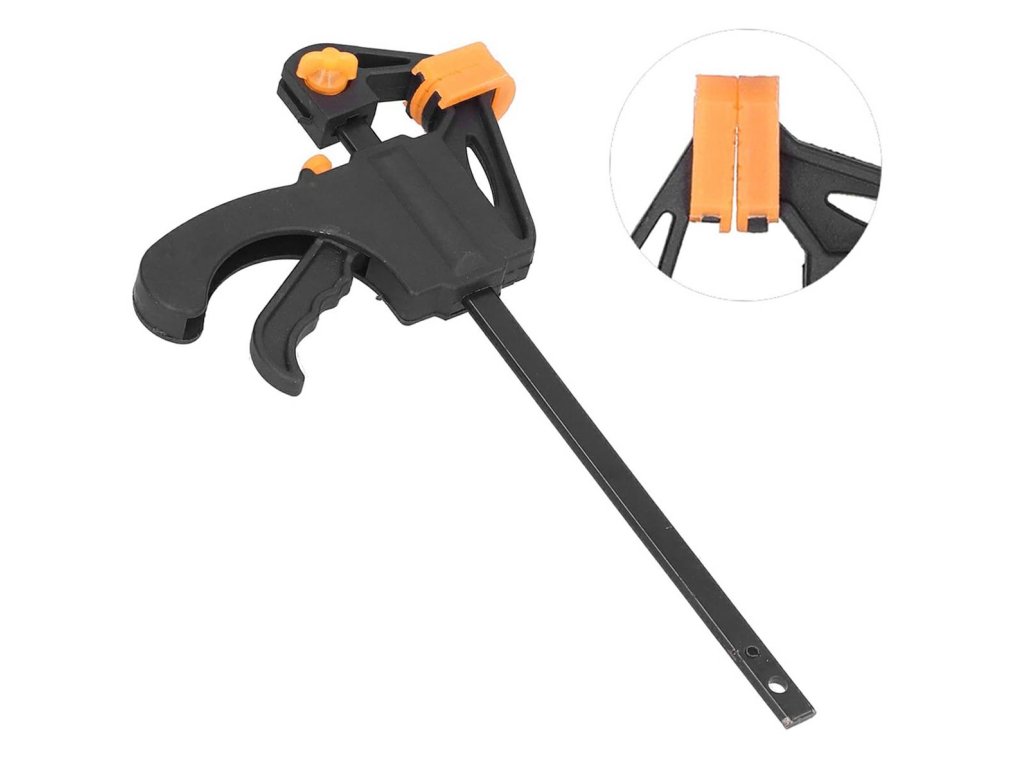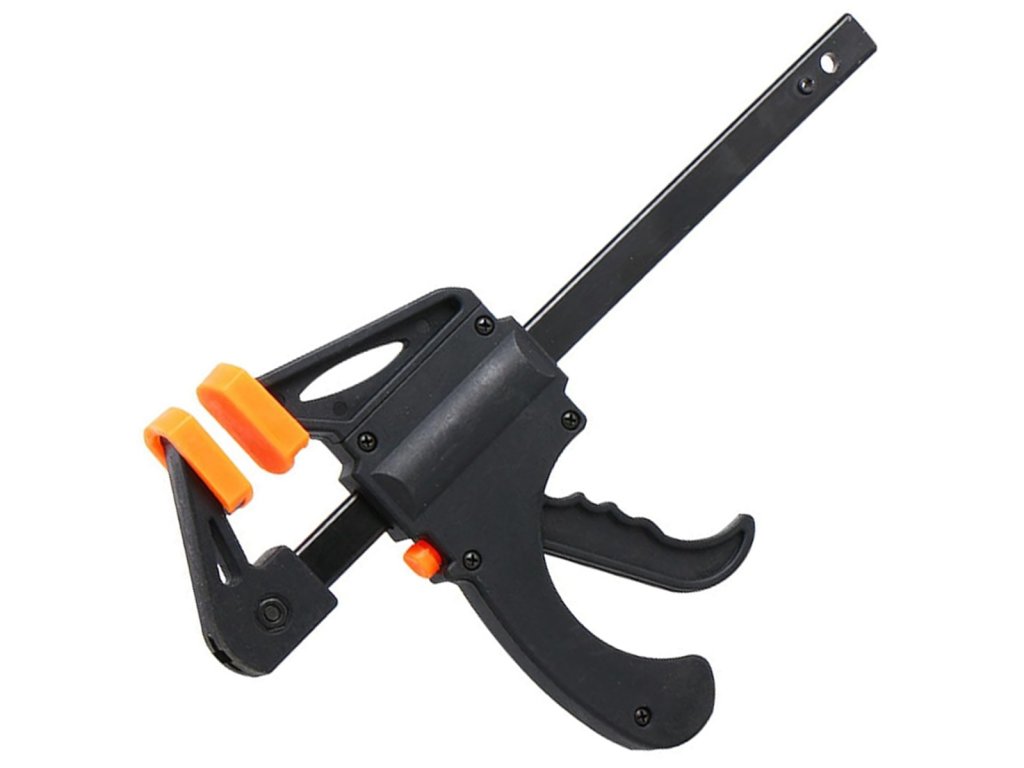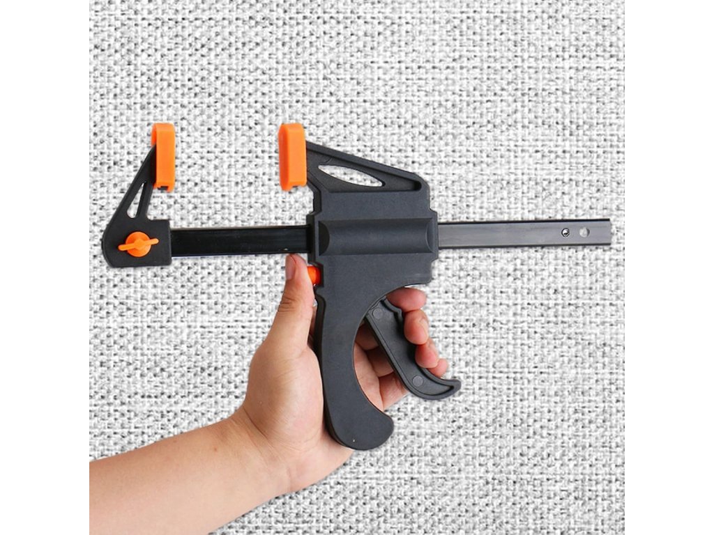 Tesařská, jednoruční samoupínací svěrka. Nepostradatelný při práci a kutilství se dřevem. Rozhodně usnadňuje montáž dřevěných prvků a hmoždinkových spojů. Navrženo pro stlačení a roztažení materiálu. Vyrobeno z pevného materiálu, zajišťujícího vysokou odolnost. Vybaveno dvěma přítlačnými podložkami na obou stranách.