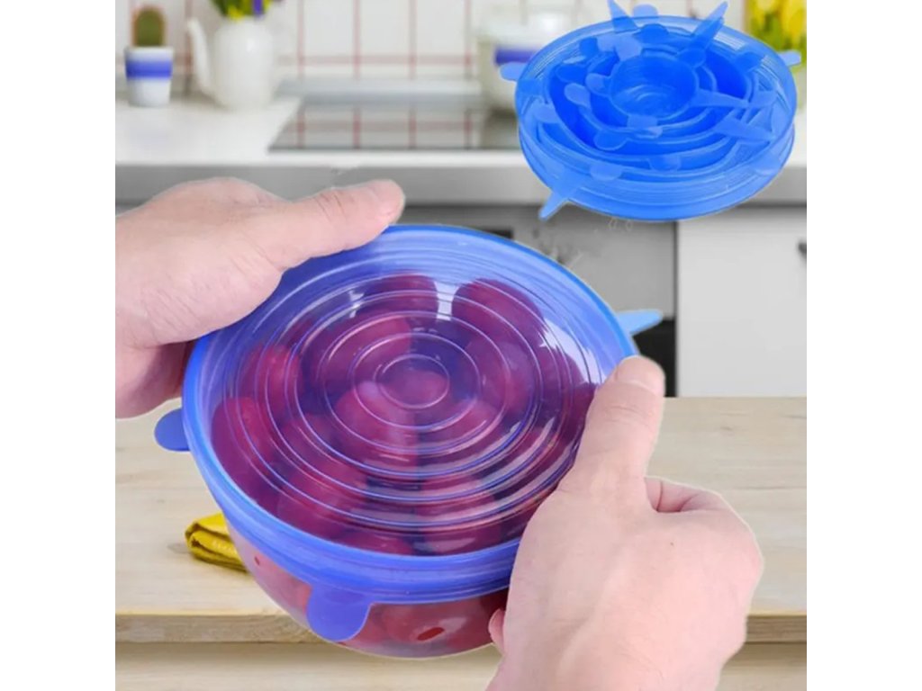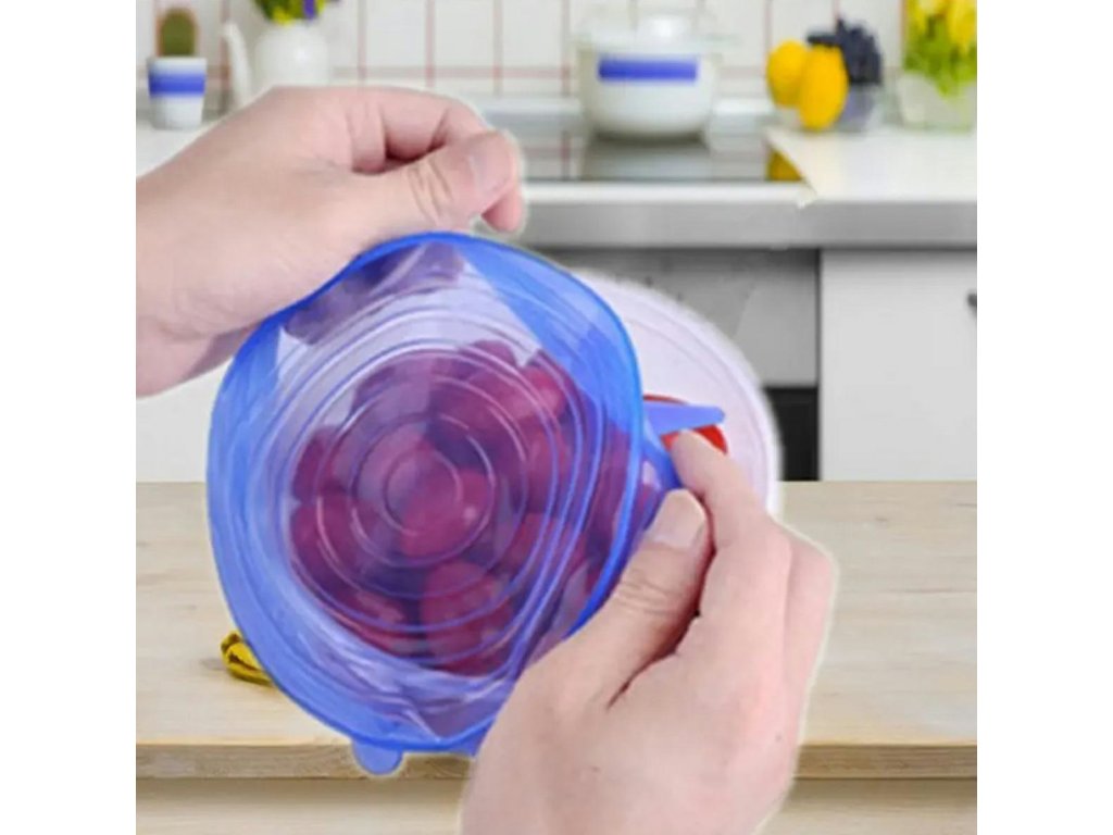 Sada 6 ks silikonových obalů na potraviny - úspěšně nahradí běžnou hliníkovou fólii, zabrání vysychání a zkažení potravin. Jsou vyrobeny ze silikonu, který je extrémně odolný vůči vysokým teplotám a je roztažitelný a přizpůsobivý. Díky tomu je lze mýt v myčce na nádobí, skladovat v lednici a vystavovat teplu – bez ztráty svých vlastností. Díky své pružnosti se perfektně vejdou do nádob různých velikostí z jakéhokoli druhu materiálu (plast, keramika, ocel, porcelán atd.).