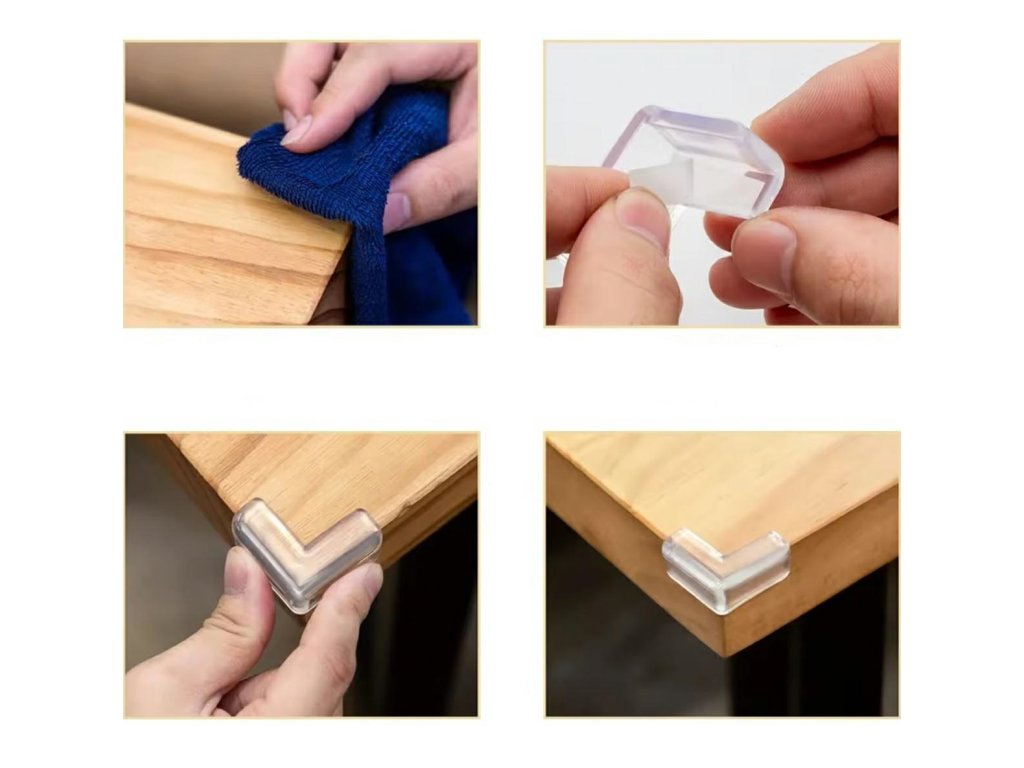 - Lze instalovat do rohů stolů, židlí, skříní, polic a dalšího nábytku s ostrými hranami.